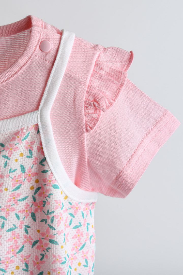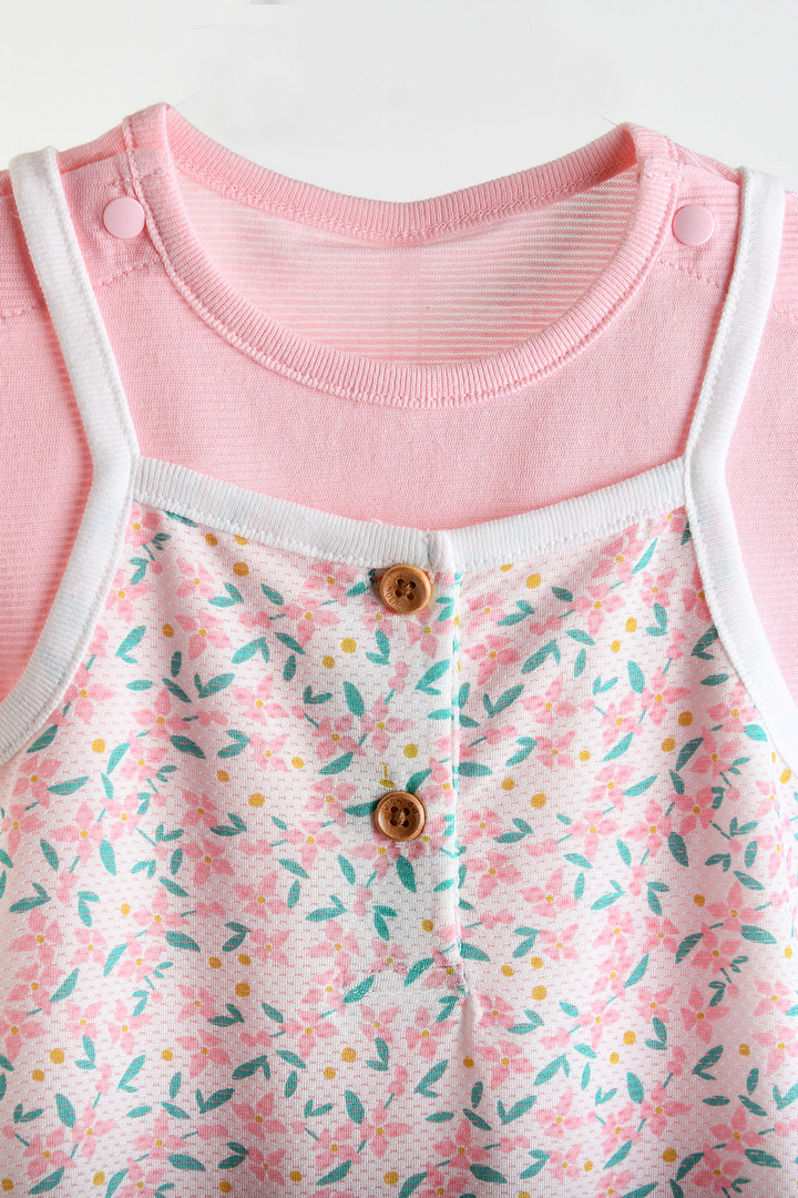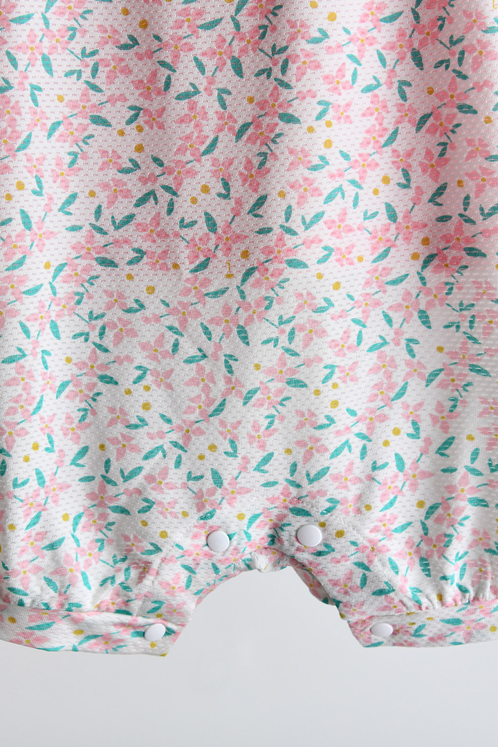 상의는 어디에나 매치하기 쉬워 아기와 유아의 데일리 코디에 활용하기 좋으며, 우주복은 통기성이 좋아 내복처럼 시원하고 편안하게 착용할 수 있고, 플라워 무드 나염과 러블리한 컬러감, 어깨 프릴 디테일이 어우러져 모이몰른만의 사랑스러운 감성을 담은 아이템.
