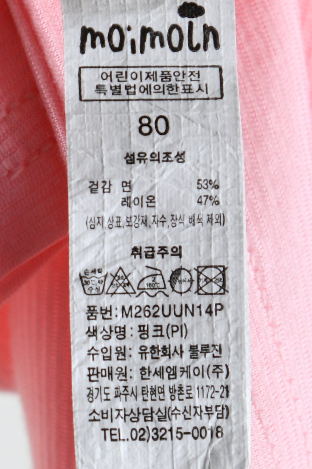 | 세탁방법 및 취급시 주의사항 | 본 세품은 손세탁 하십시오(케어라벨 참고) |