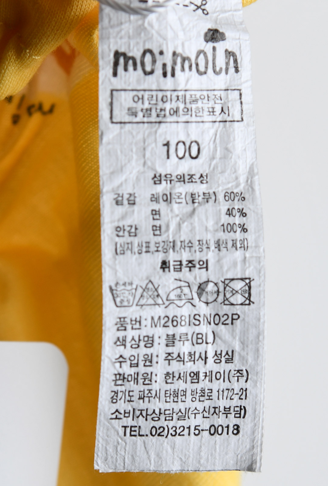 | 세탁방법 및 취급시 주의사항 | 본 세품은 손세탁 하십시오(케어라벨 참고) |
