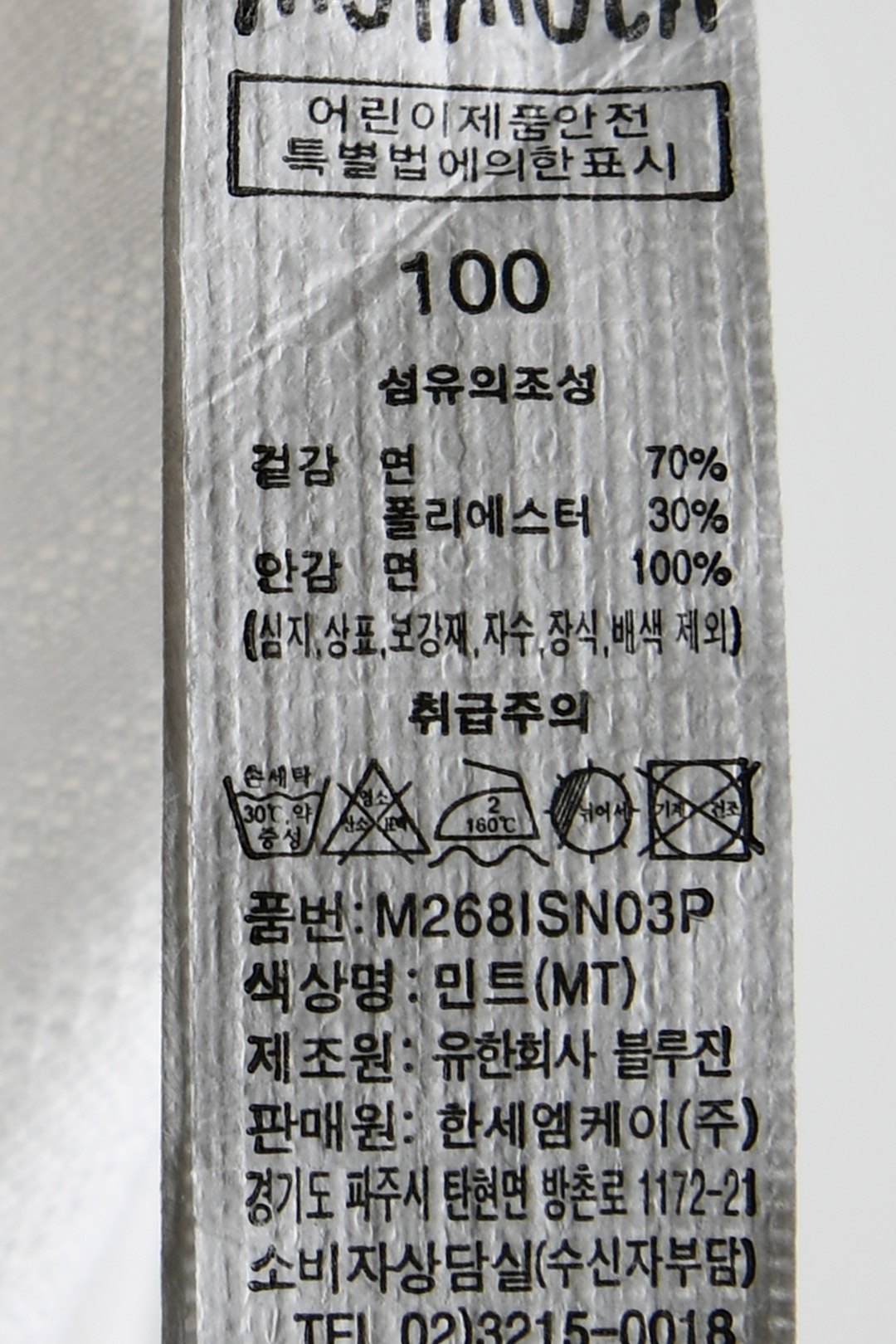 세탁방법 및 취급시 주의사항 본 세품은 손세탁 하십시오(케어라벨 참고)