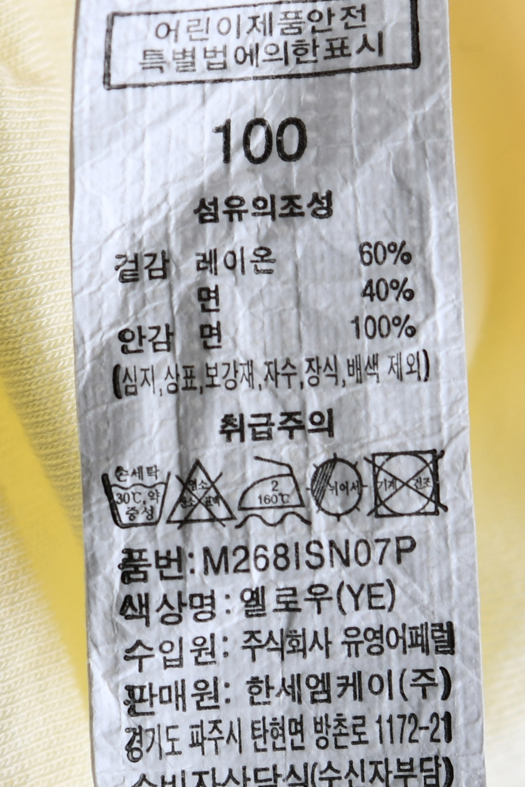 | 세탁방법 및 취급시 주의사항 | 본 세품은 손세탁 하십시오(케어라벨 참고) |