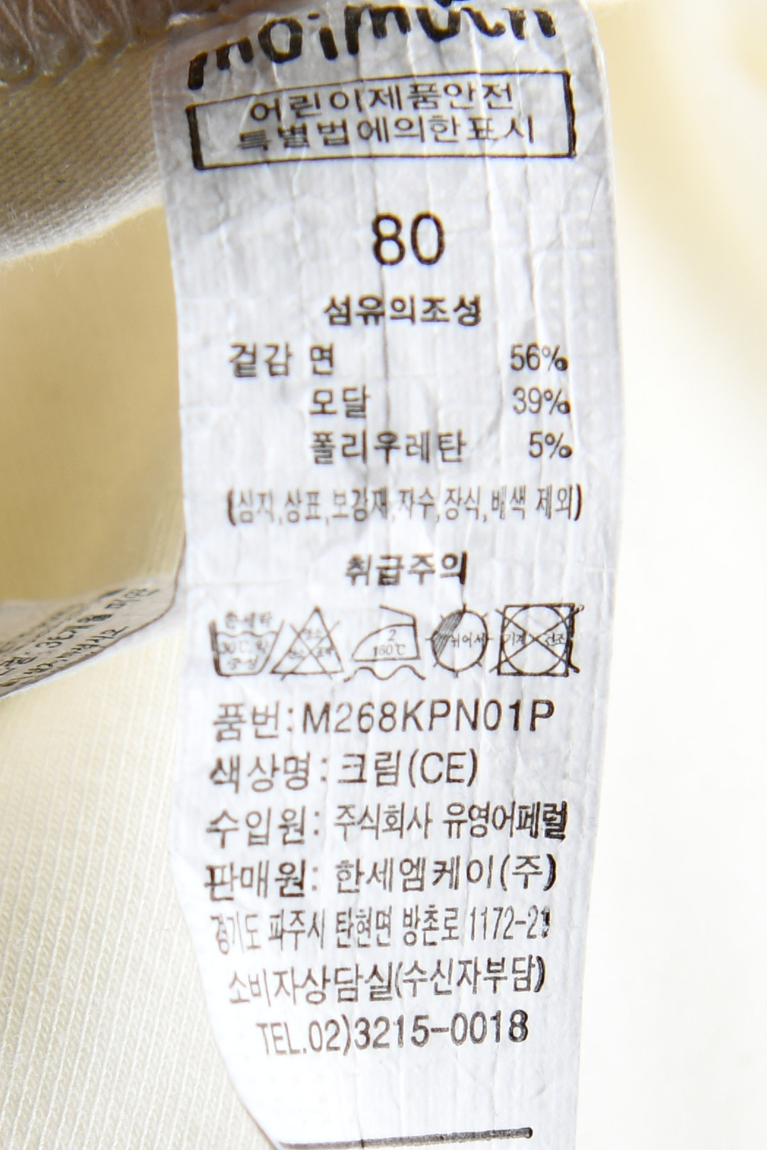 | 세탁방법 및 취급시 주의사항 | 본 세품은 손세탁 하십시오(케어라벨 참고) |