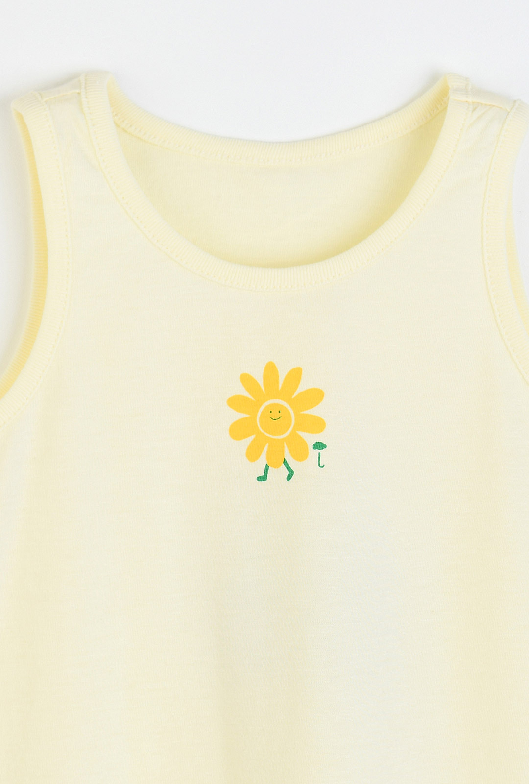 항균 및 소취 효과가 뛰어난 밤부 소재에 귀여운 햇살 나염으로 포인트를 준 런닝 세트