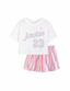 로고 티셔츠와 글로시 팬츠가 사랑스럽게 어우러진 베이비 세트