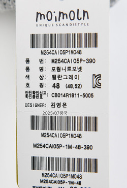 | 세탁방법 및 취급시 주의사항 | 본 세품은 손세탁 하십시오(케어라벨 참고) |