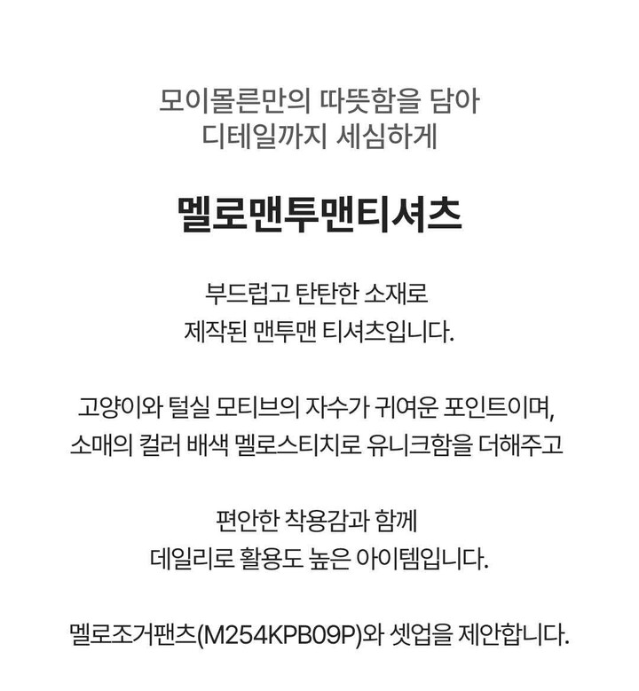 | 상품명 | [모이몰른] 멜로맨투맨티셔츠 [겨울] |
