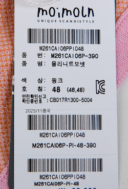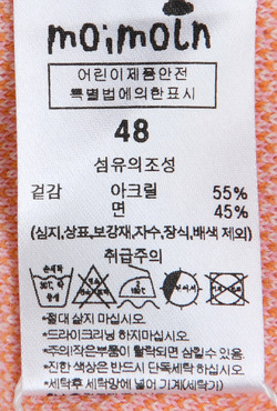 | 제품소재 | (겉감)아크릴55%,면45% |