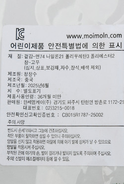 | 제품소재 | (겉감)레이온57%,나일론21%,면18%,폴리우레탄3%,폴리에스터1%(창)고무 |