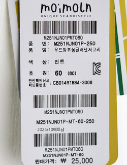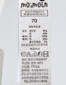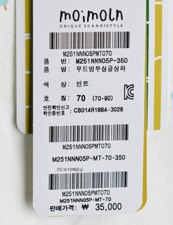 상품명 [모이몰른] 우드밤부싱글배냇저고리