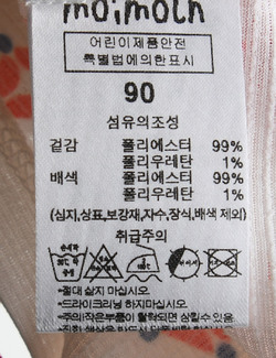 | 세탁방법 및 취급시 주의사항 | 본 세품은 손세탁 하십시오(케어라벨 참고) |