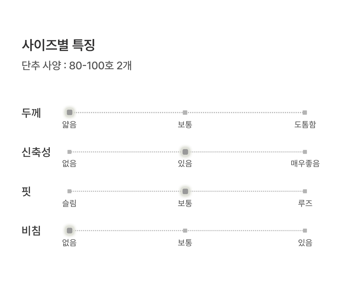 | 제품소재 | (겉감)면98%,폴리우레탄2% |