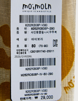 | 제품소재 | (겉감)폴리에스터93%,폴리우레탄7%(배색)면95%,폴리우레탄5% |