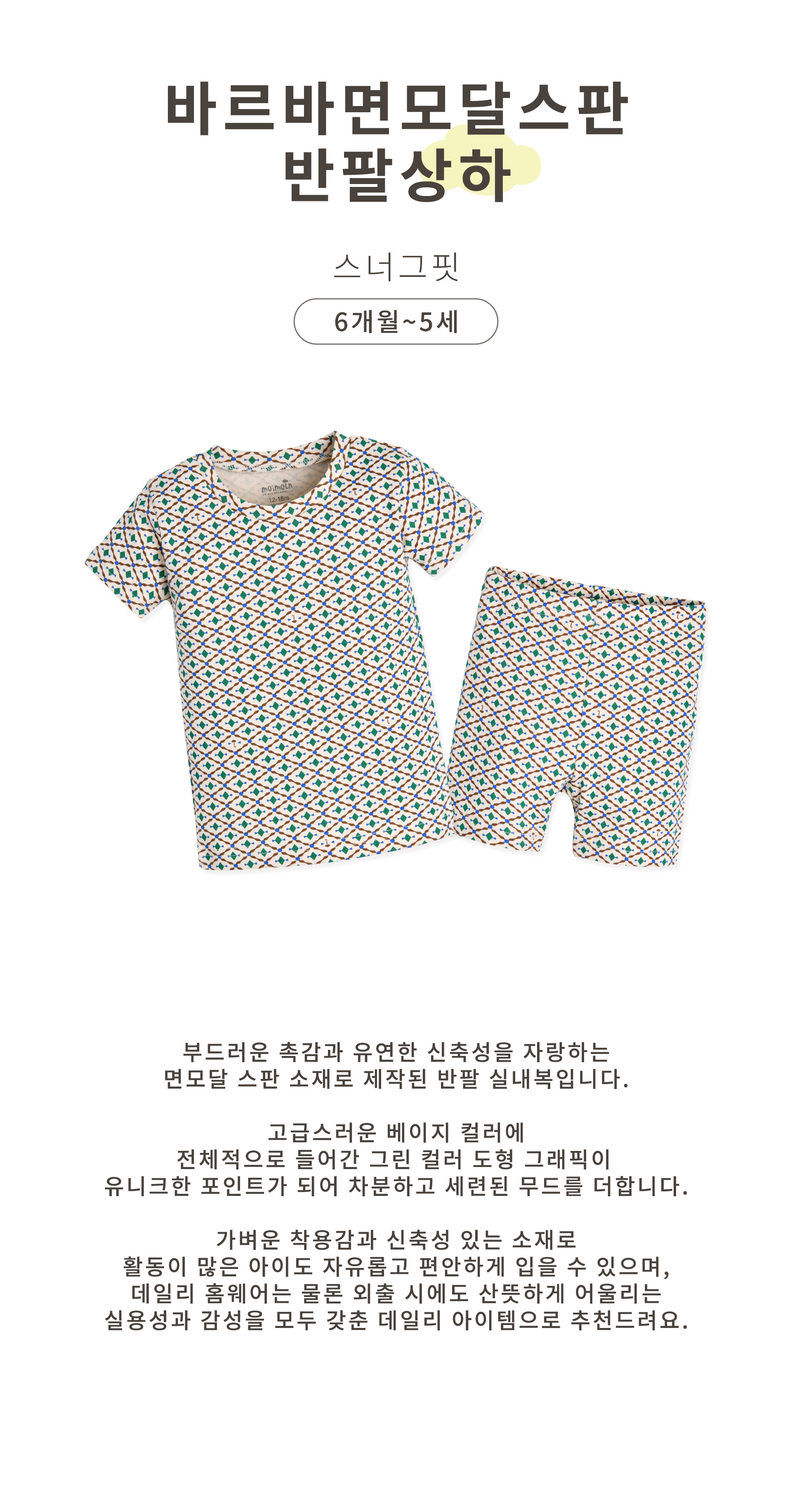 | 상품명 | [모이몰른] 바르바면모달스판반팔상하 [여름] |