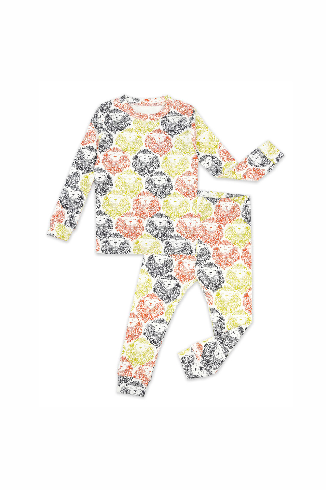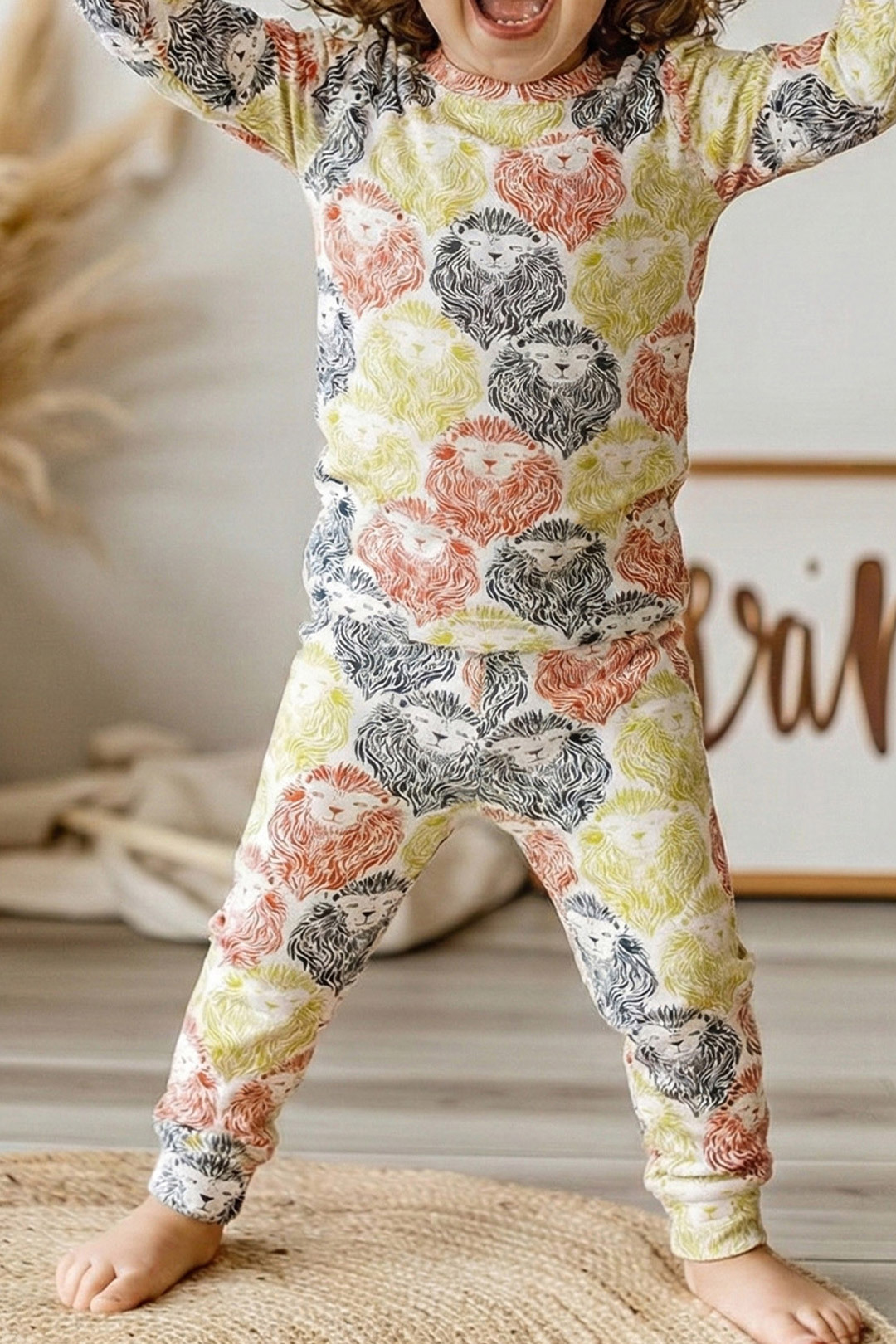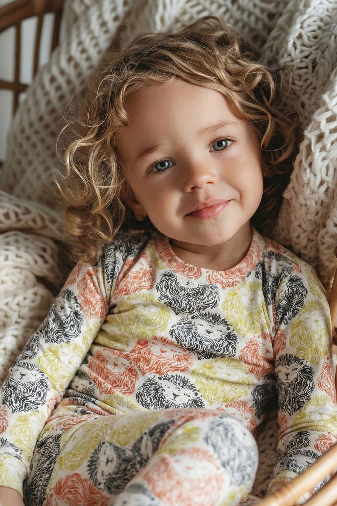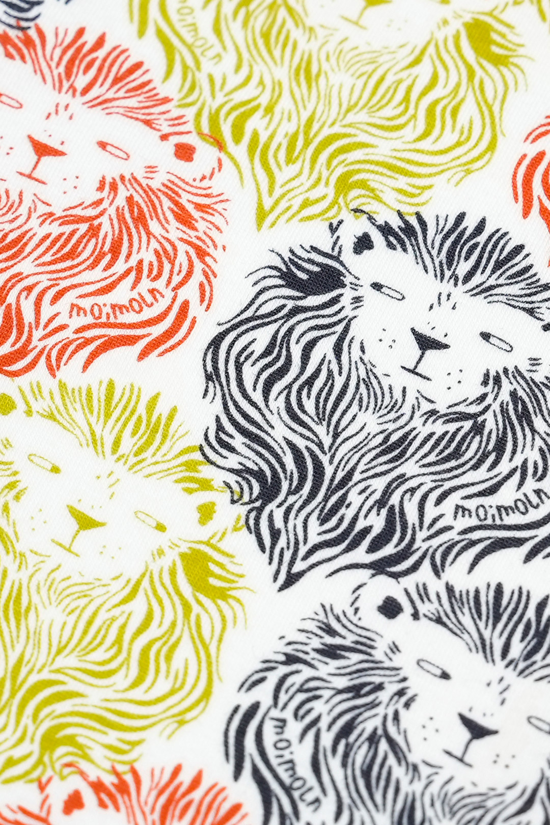 깨끗하고 화사한 바탕 위에 정교하게 프린트된 귀여운 사자 그래픽은
