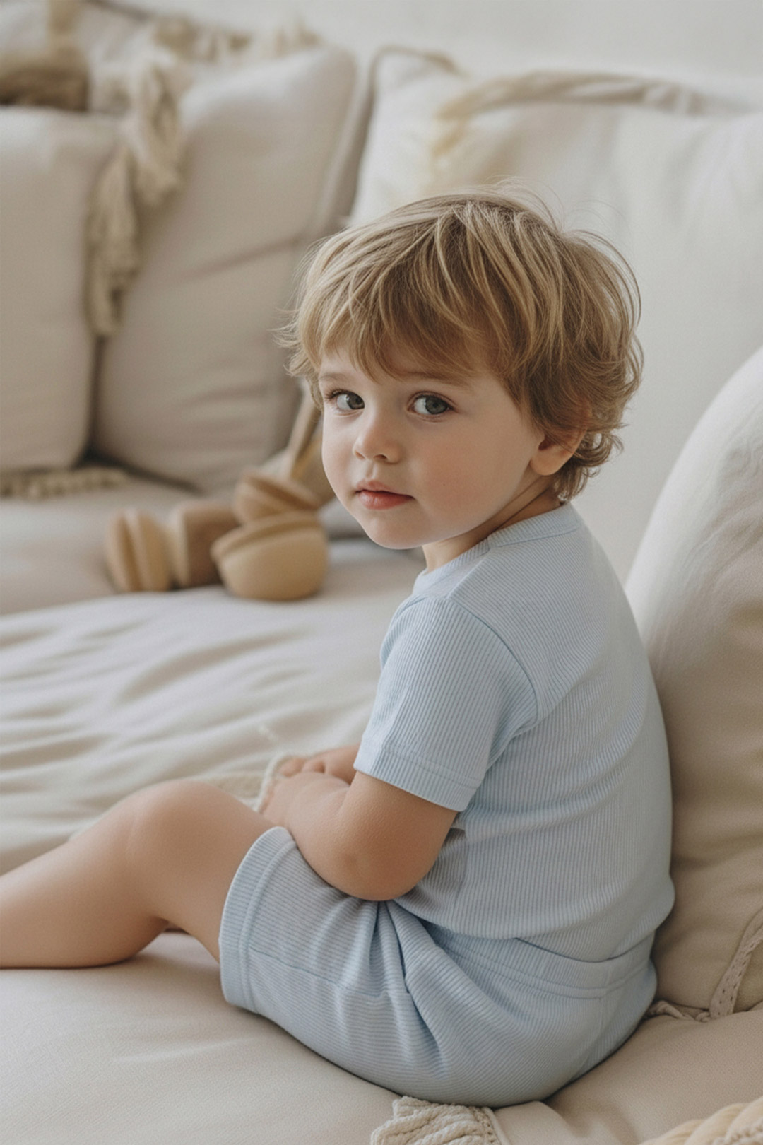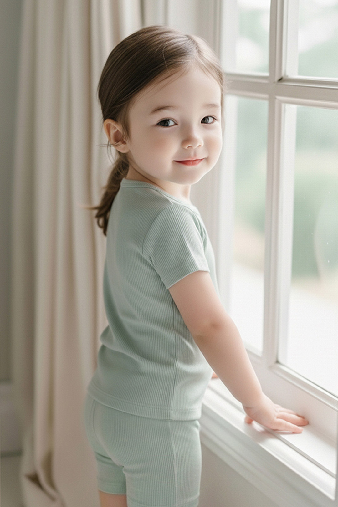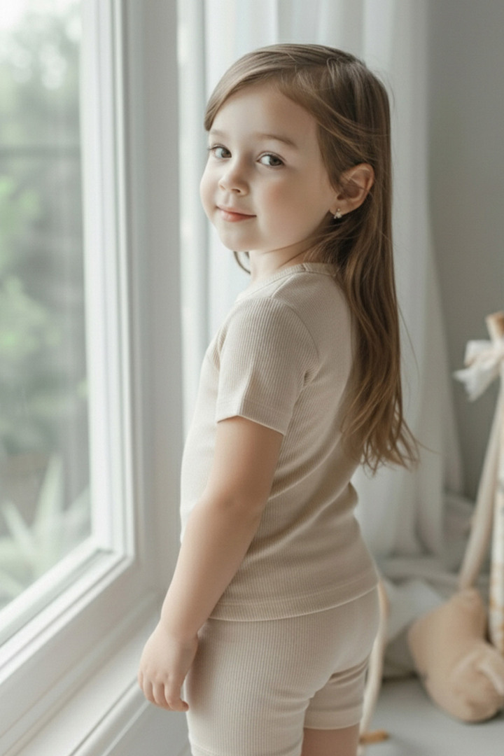 여름철 아이 피부에 기분 좋은 청량감을 선사하는 레이온 골지 스판 소재를