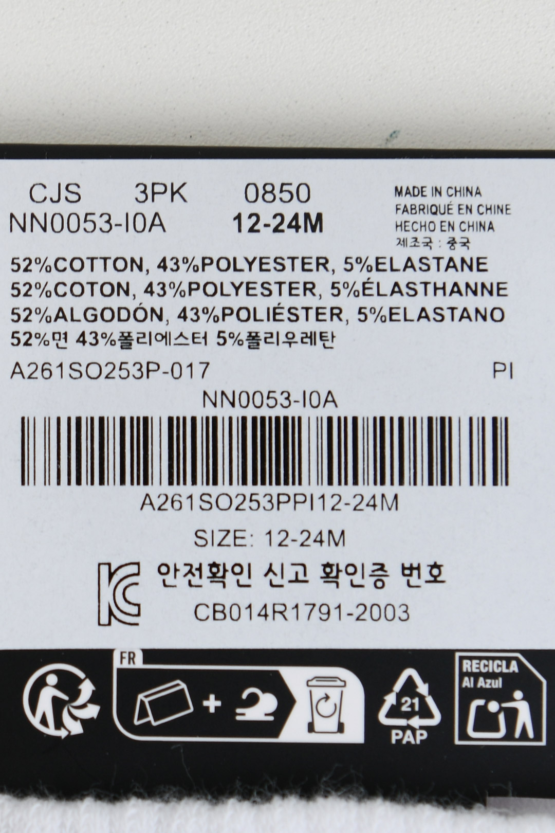 품명 및 모델명 (겉감)면52%,폴리에스터43%,폴리우레탄5%
