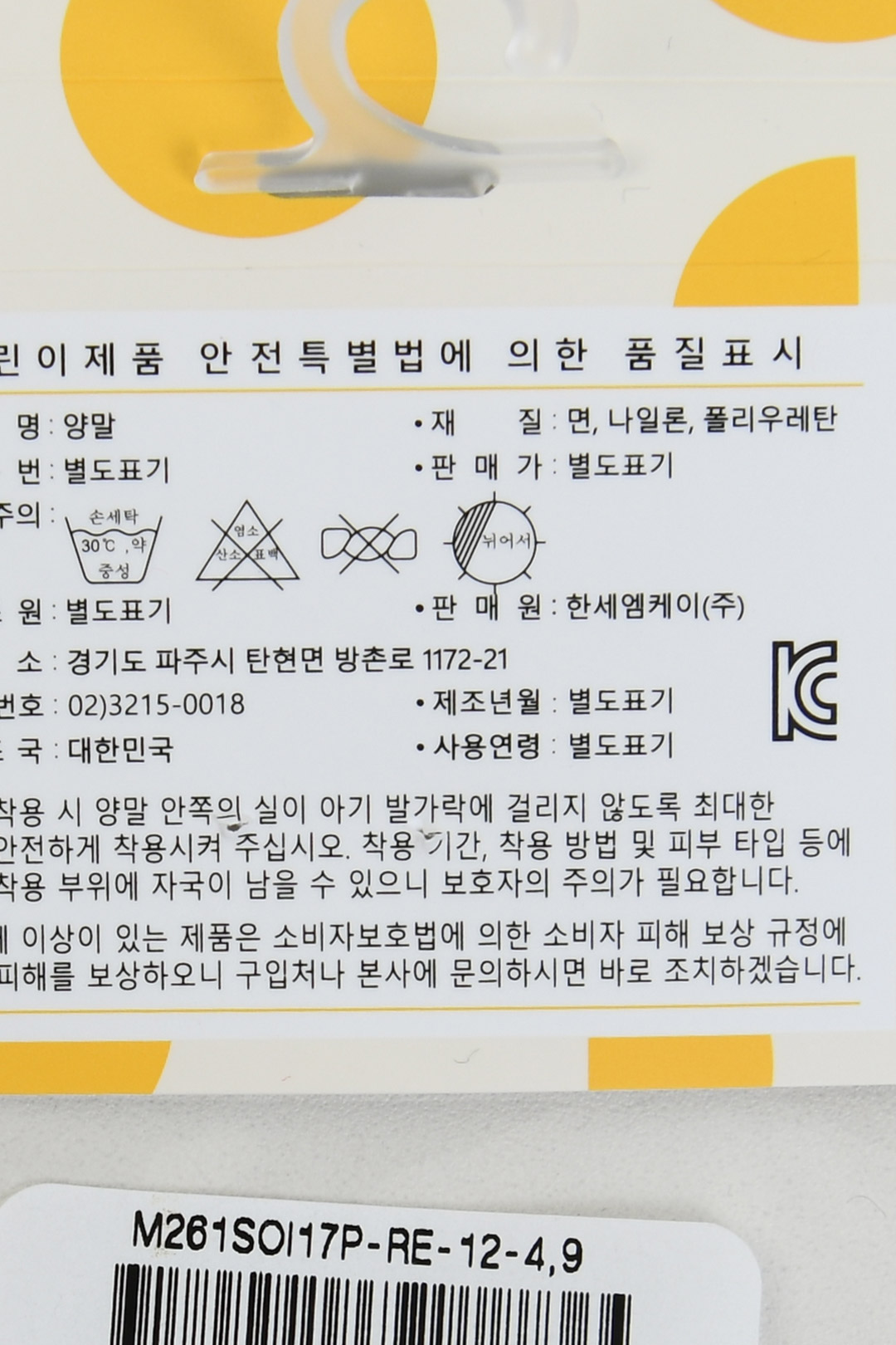 | 제조국 | 한세엠케이㈜ |