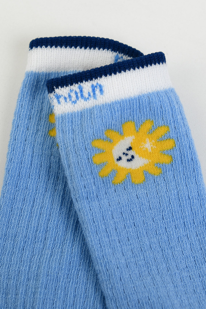 시원한 블루 컬러와 귀여운 해 모티브 포인트의 토들러 메쉬 반타이즈