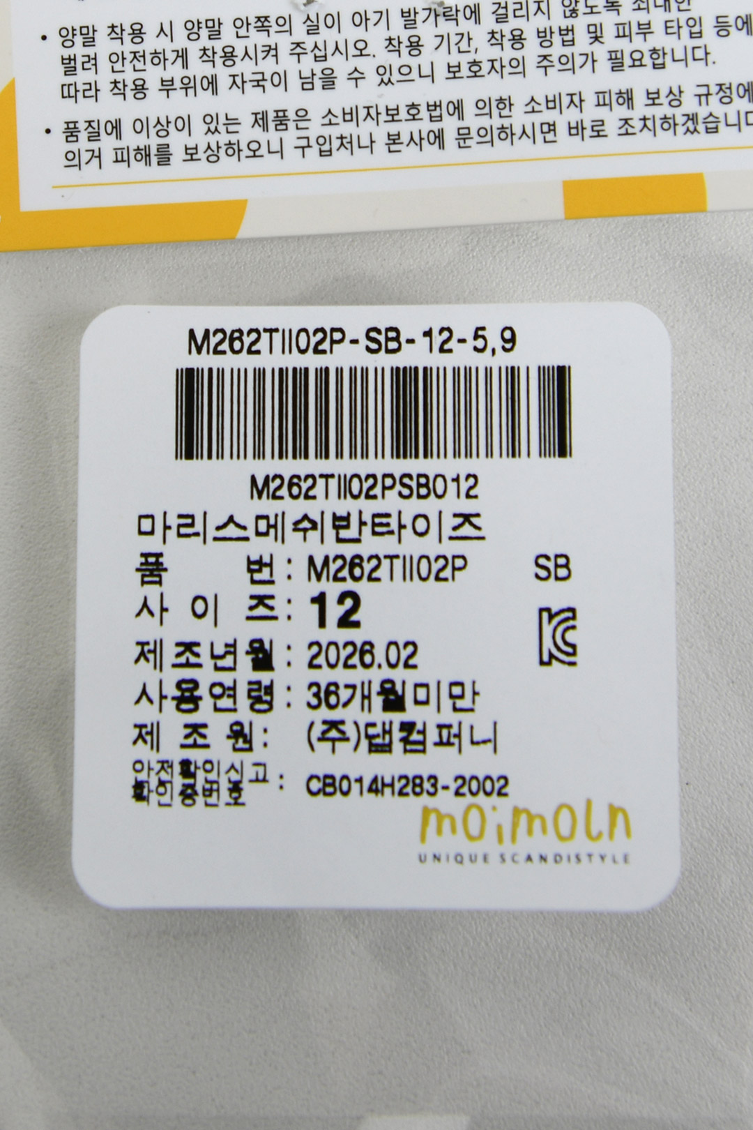 해당 인증정보는 판매자가 등록한 것으로 등록정보에 대한 일체의 책임은 판매자에게 있습니다.