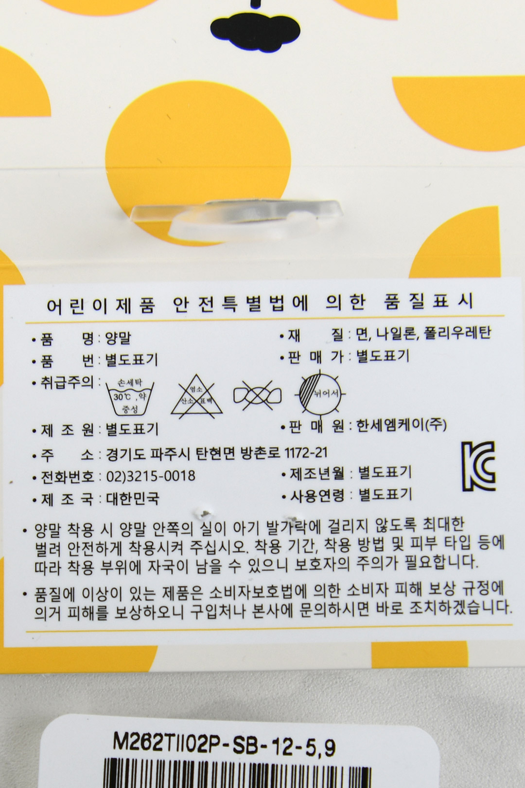 | 제조국 | 한세엠케이㈜ |