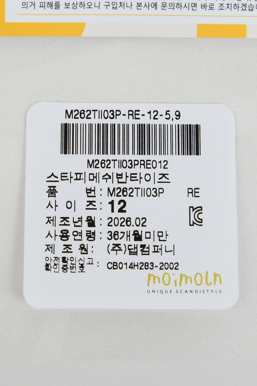 해당 인증정보는 판매자가 등록한 것으로 등록정보에 대한 일체의 책임은 판매자에게 있습니다.