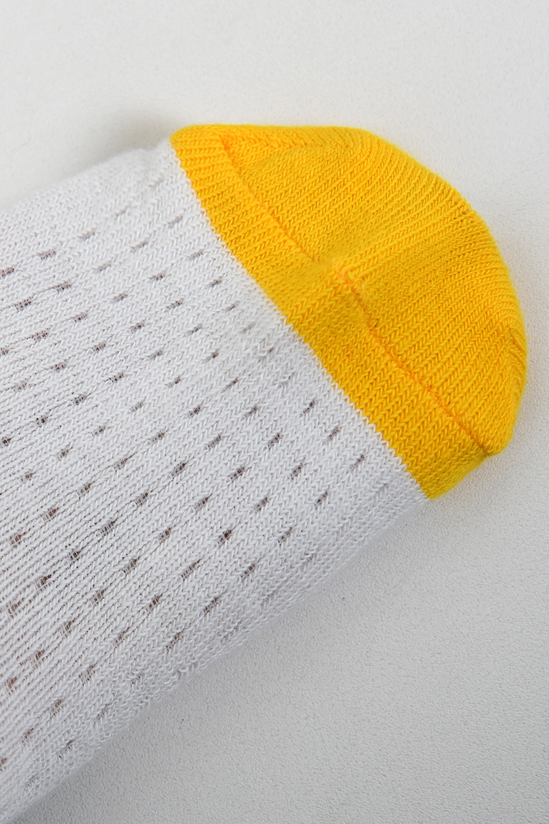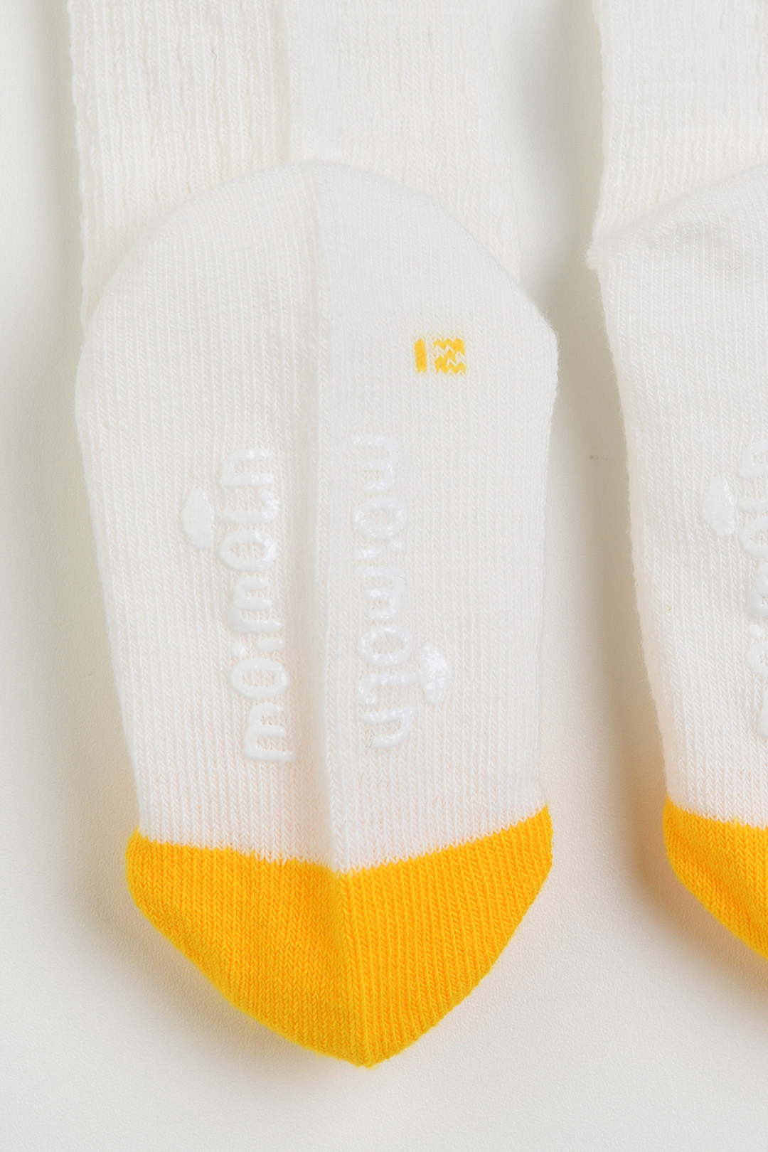 매쉬 조직으로 제작되어 통기성이 우수하고 시원함 반타이즈 뒷중심의 열매 모티브로 귀여운 포인트 선사 깨끗한 아이보리 컬러와 비비드한 옐로우 컬러 배색 디자인 활동 시에도 답답함이 적은 얇고 가벼운 두께감 일반 기계 세탁이 가능하며 세탁망 사용을 권장합니다