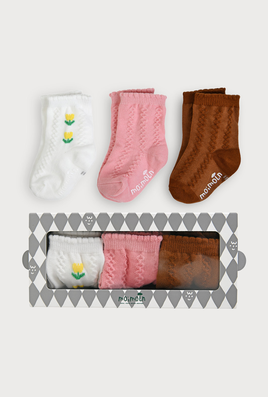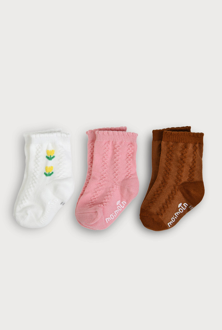 플라워 포인트와 포근한 컬러가 돋보이는 발싸개 대용 양말 3종 세트