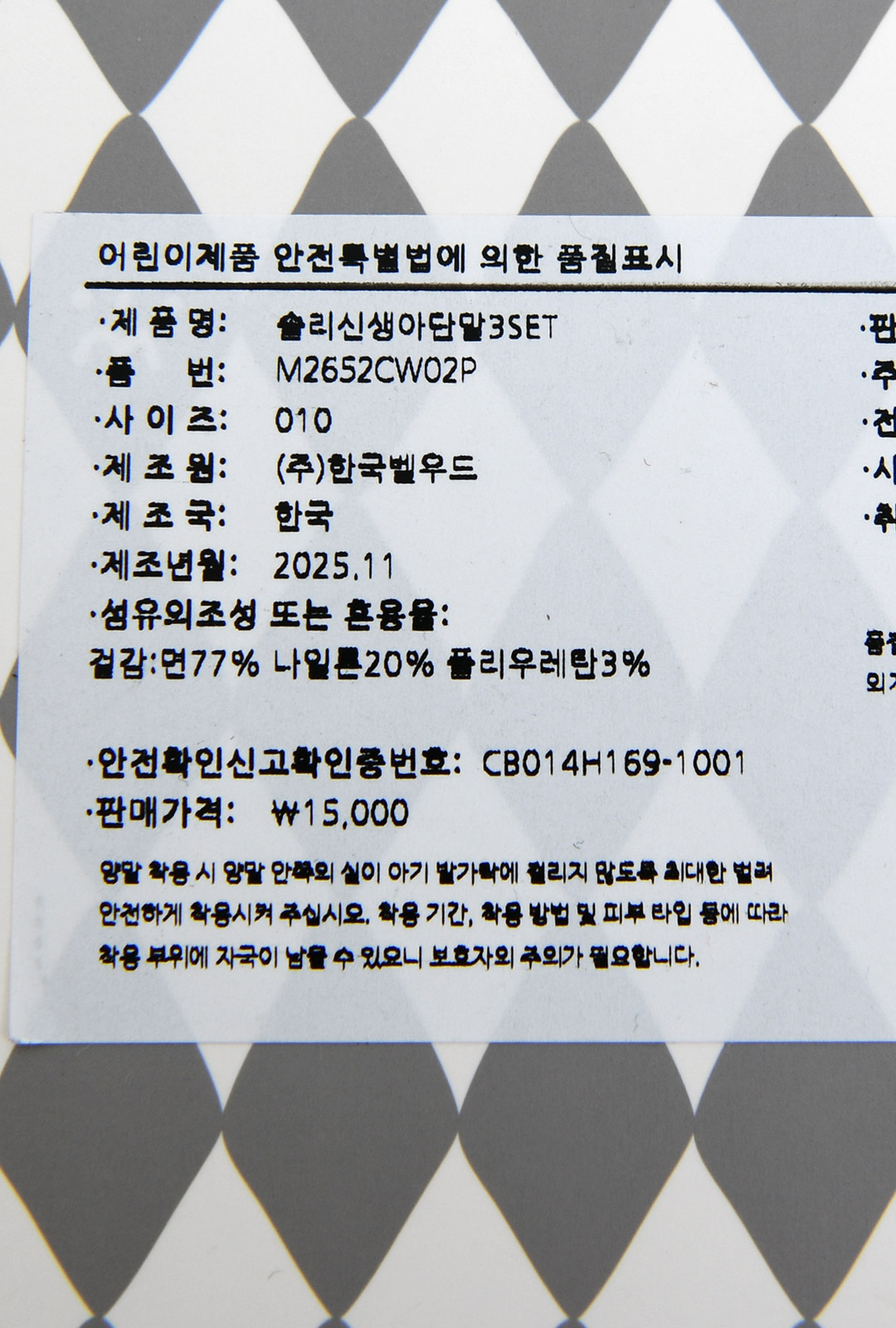 | 제조국 | 한세엠케이㈜ |