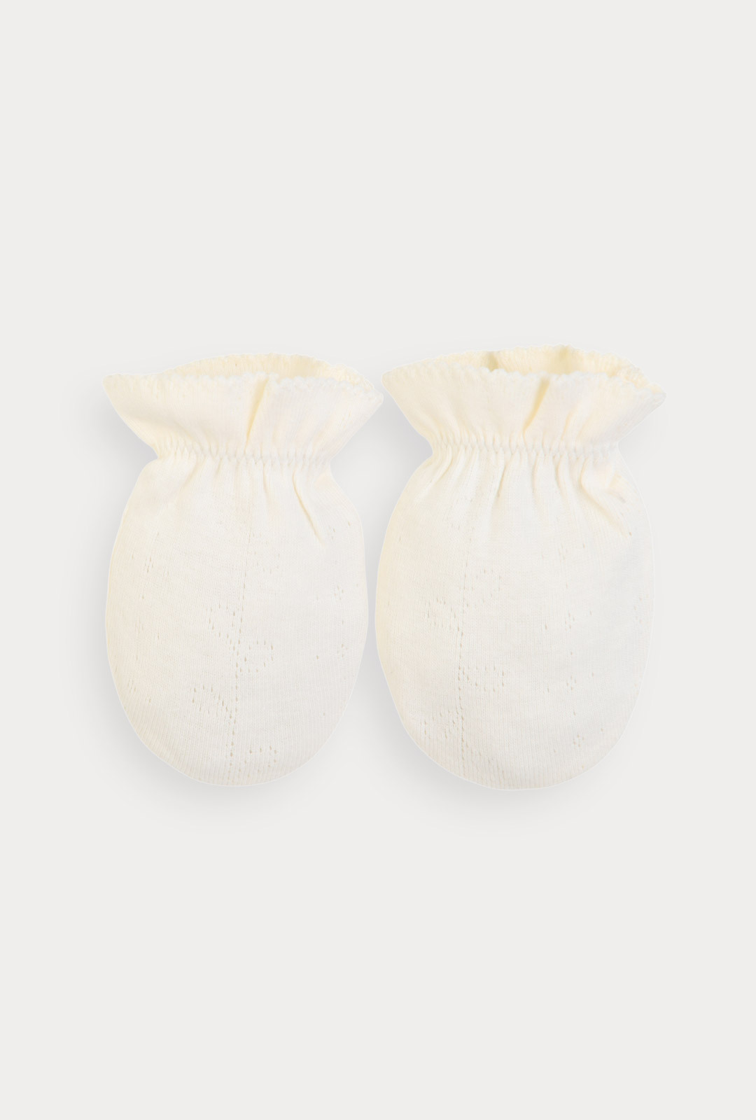 연약한 아기 피부 보호를 위한 부드러운 아일렛 자카드 소재의 손싸개