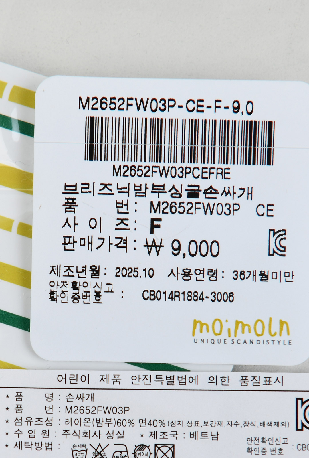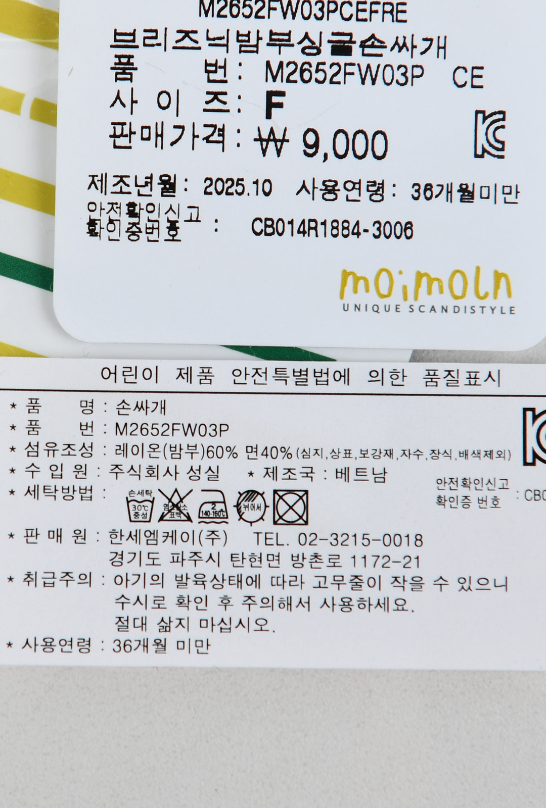 상품명 [모이몰른] 브리즈닉밤부싱글손싸개 [전시즌]