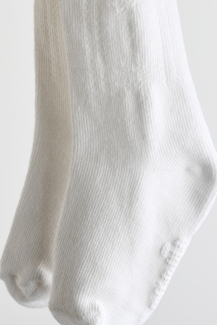신었을 때 옆면에 은은한 눈꽃 모양의 자카드가 포인트인 아이보리 타이즈