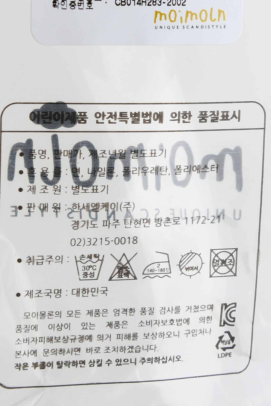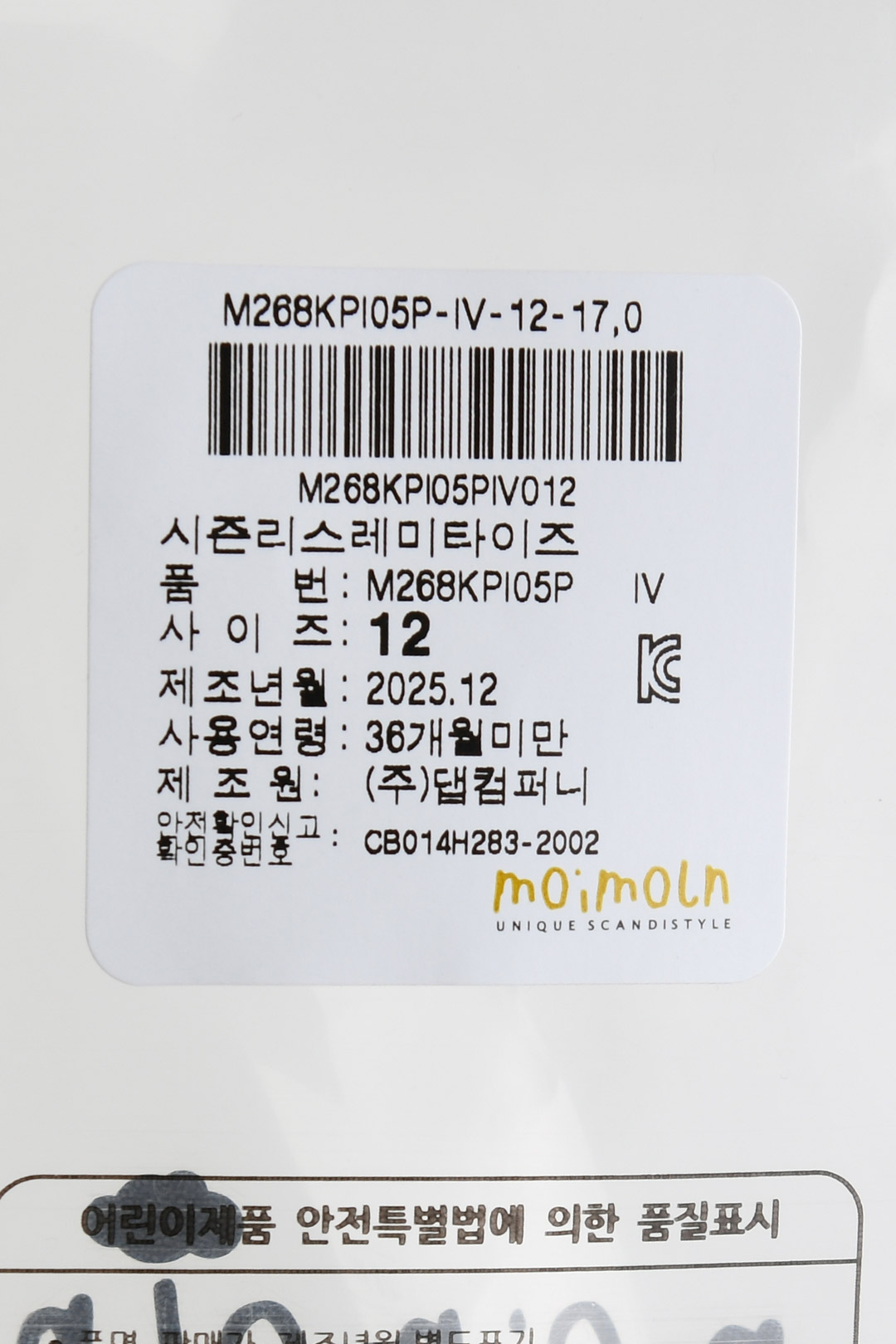 | 제조국 | 한세엠케이㈜ |