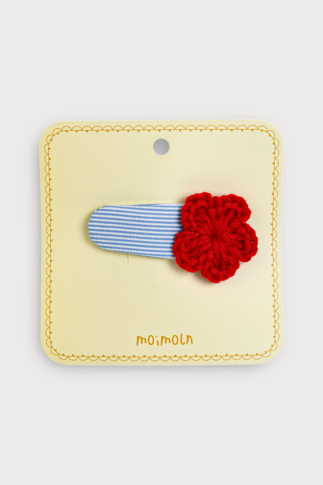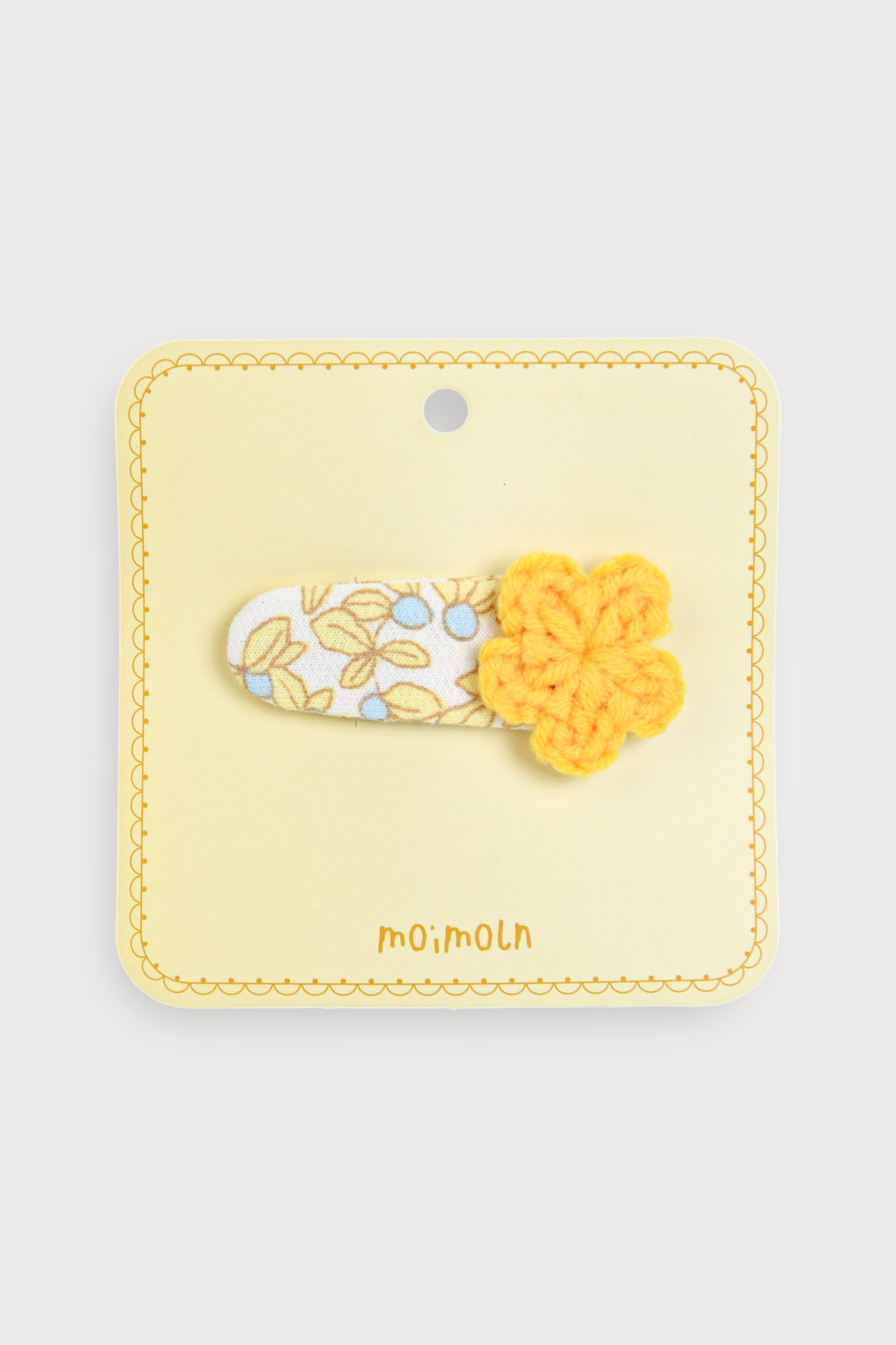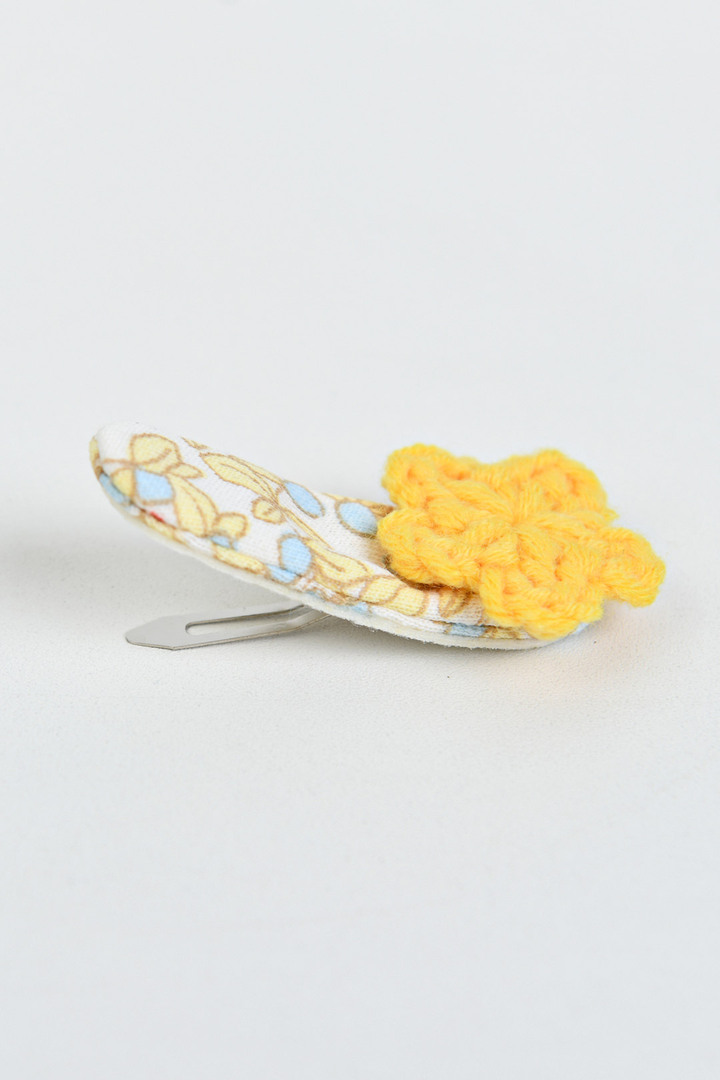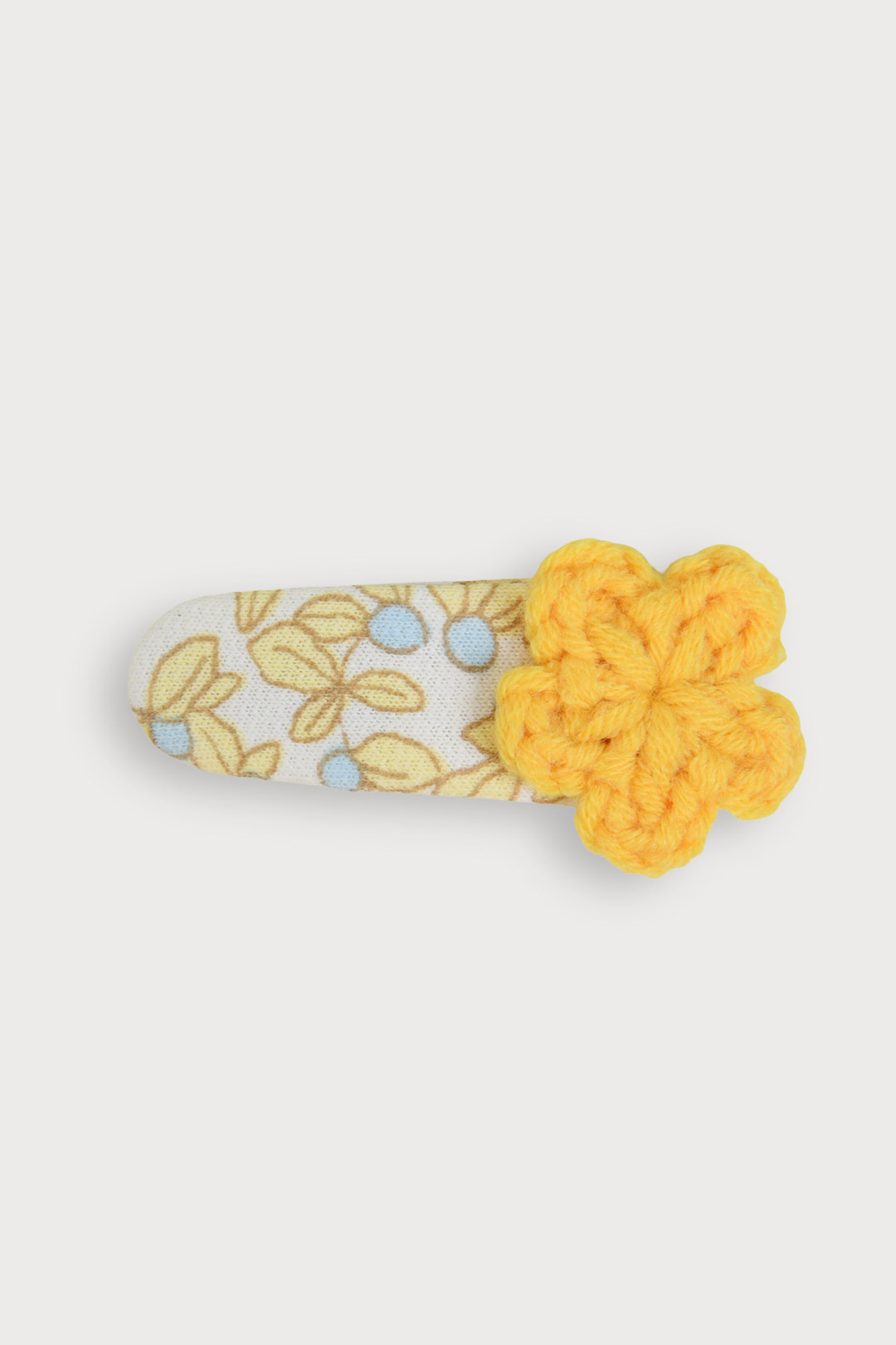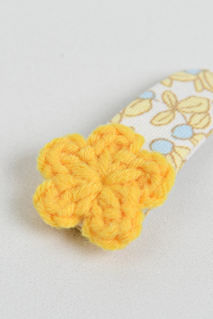소프트한 컬러의 똑딱헤어핀 위에 니트 꽃모티브가 포인트가 되어 다양한 원피스와 코디하여 포인트 주기 좋은 헤어핀. 똑딱핀으로 탈착이 용이한 아이템