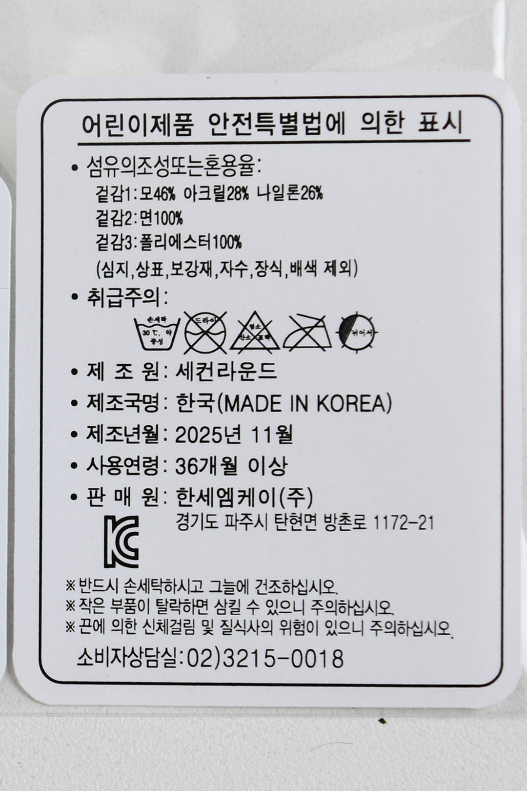 | 제조국 | 한세엠케이㈜ |
