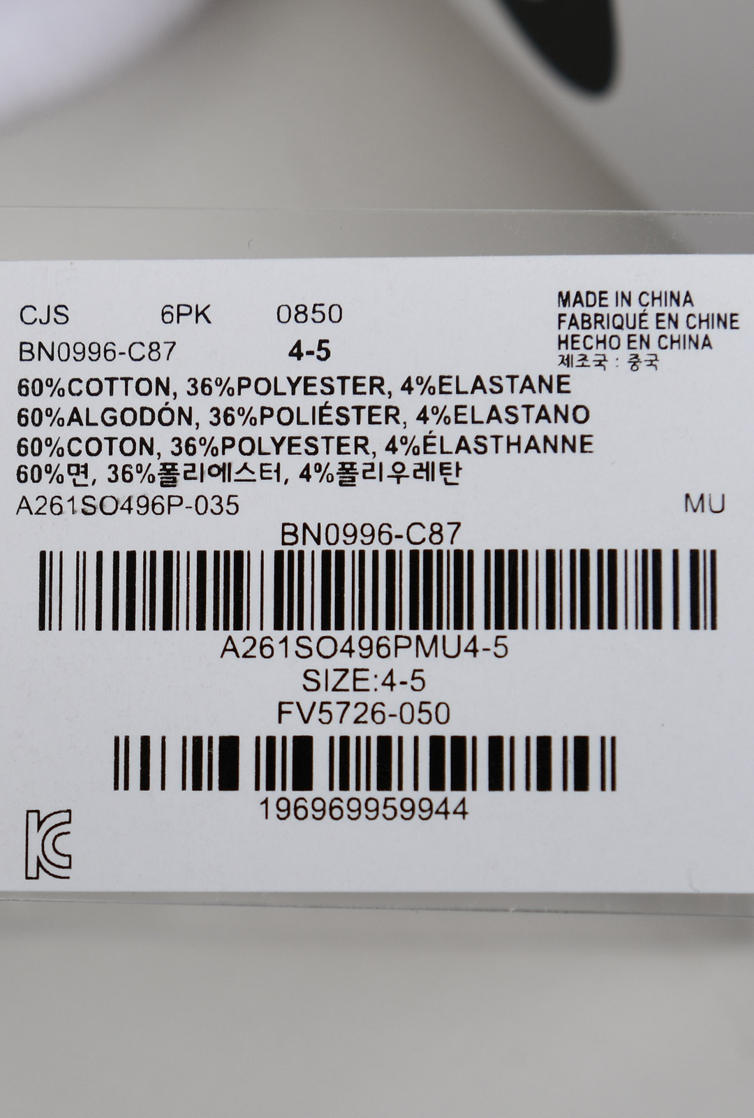 품명 및 모델명 (겉감)면60%,폴리에스터36%,폴리우레탄4%
