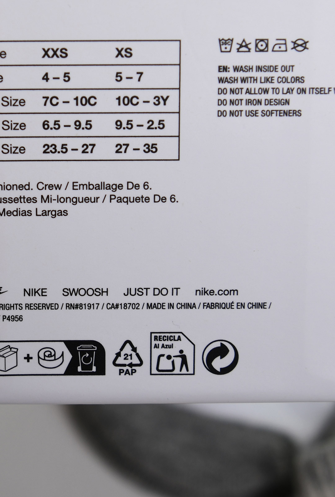 상품명 나이키스마일크루삭스6PK (토들러)
