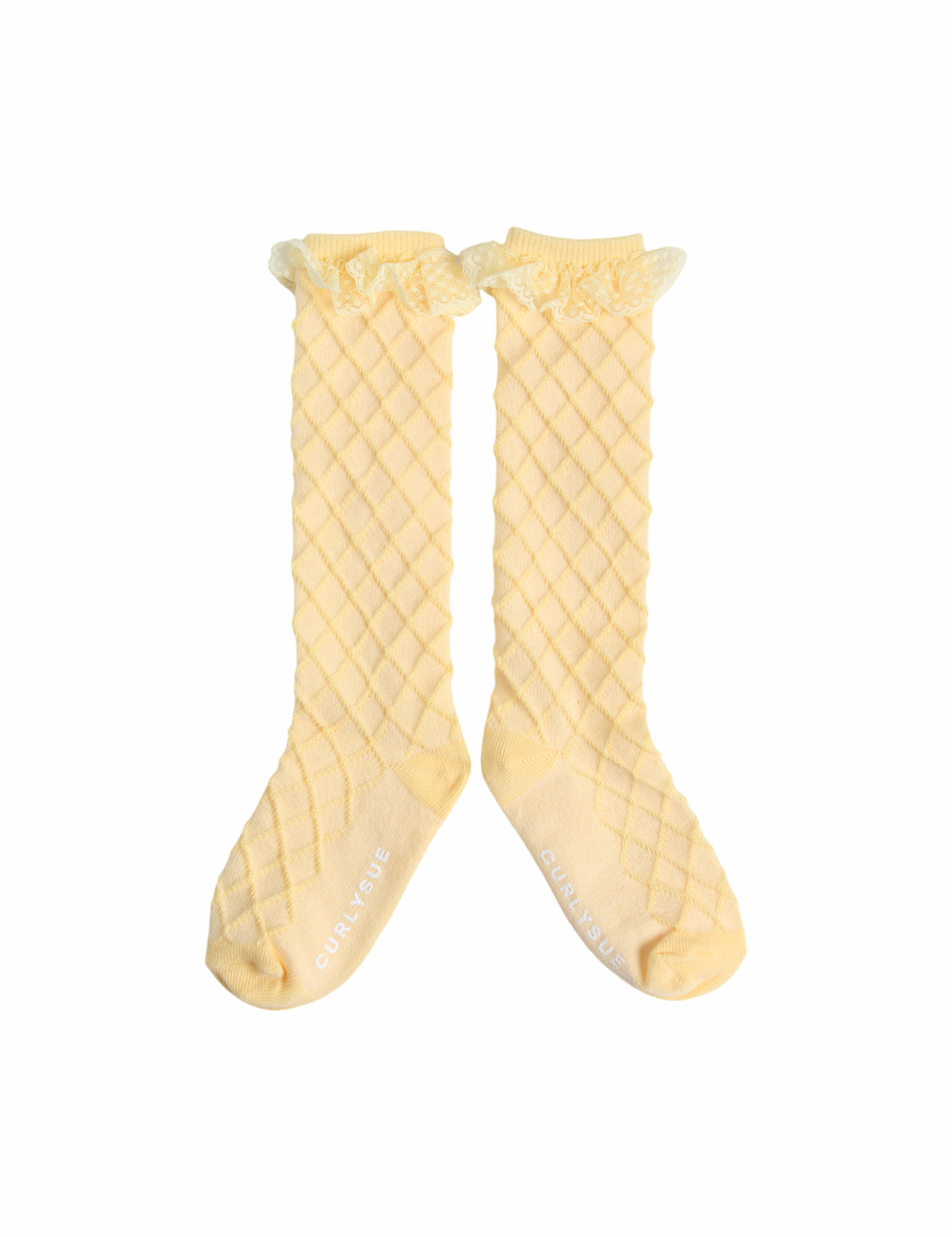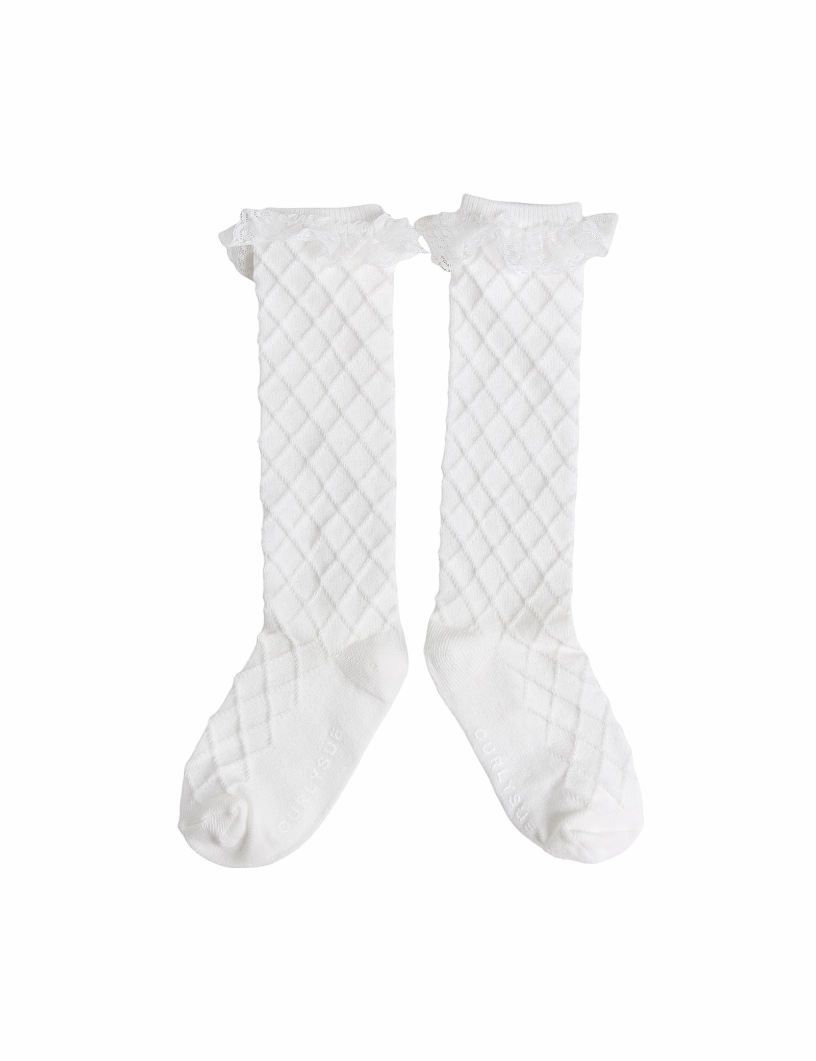 다이아 자가드 패턴에 레이스로 포인트를 준 장말입니다. 원피스, 스커트 등과 코디하기 좋습니다.