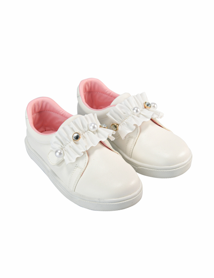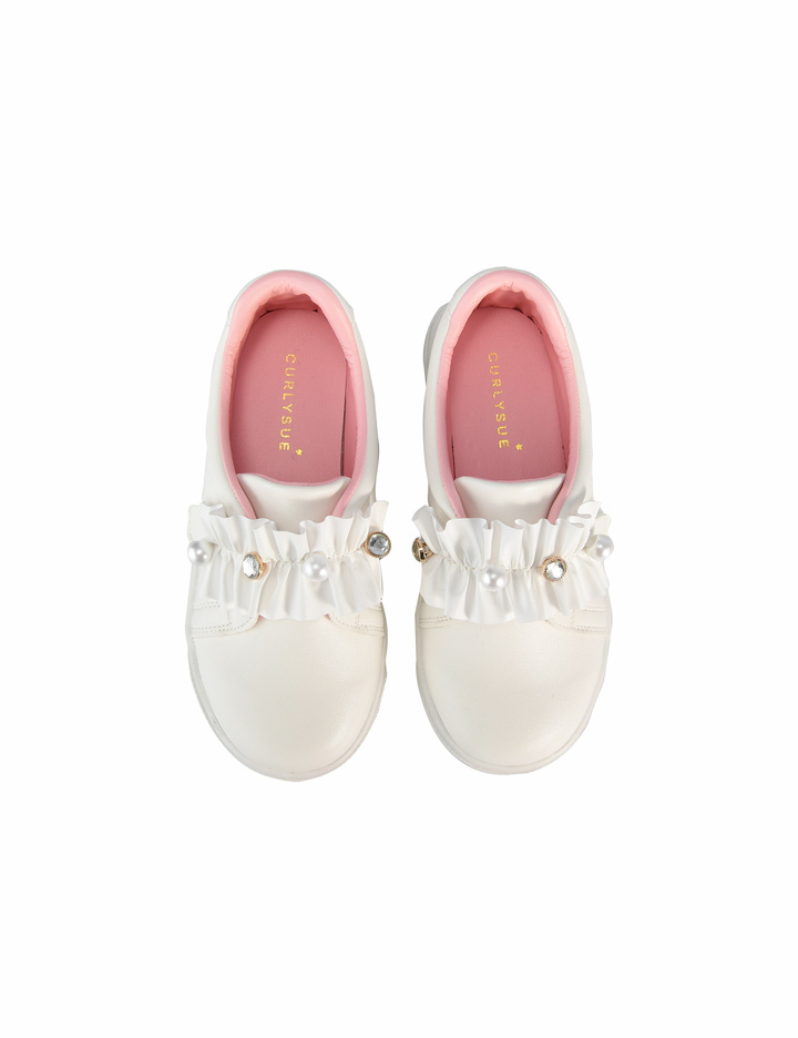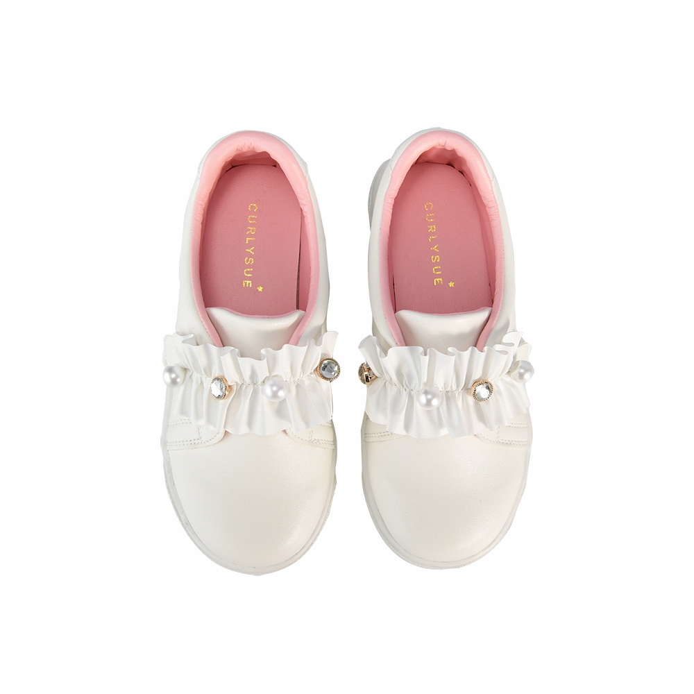 편안한 슬립온 디자인에 진주 단추와 큐빅 단추로 포인트를 주어 여아 감성이 나면서도 데일리 한 룩에 다양하게 매치될 수 있는 아이템입니다.