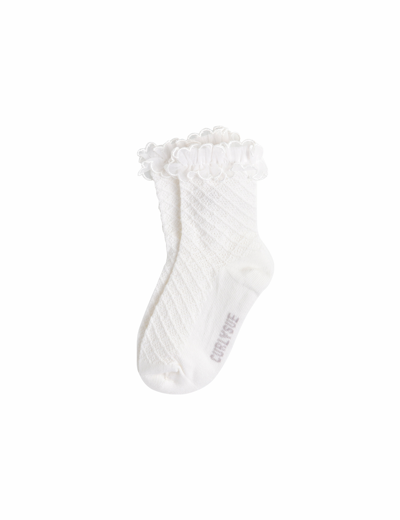 기본 흰색 양말 사이즈로 패턴물 바닥과레이스로 포인트를 준 양말입니다. 베이직한 아이템으로 어느 아이템과도 코디가 용이한 아이템입니다.