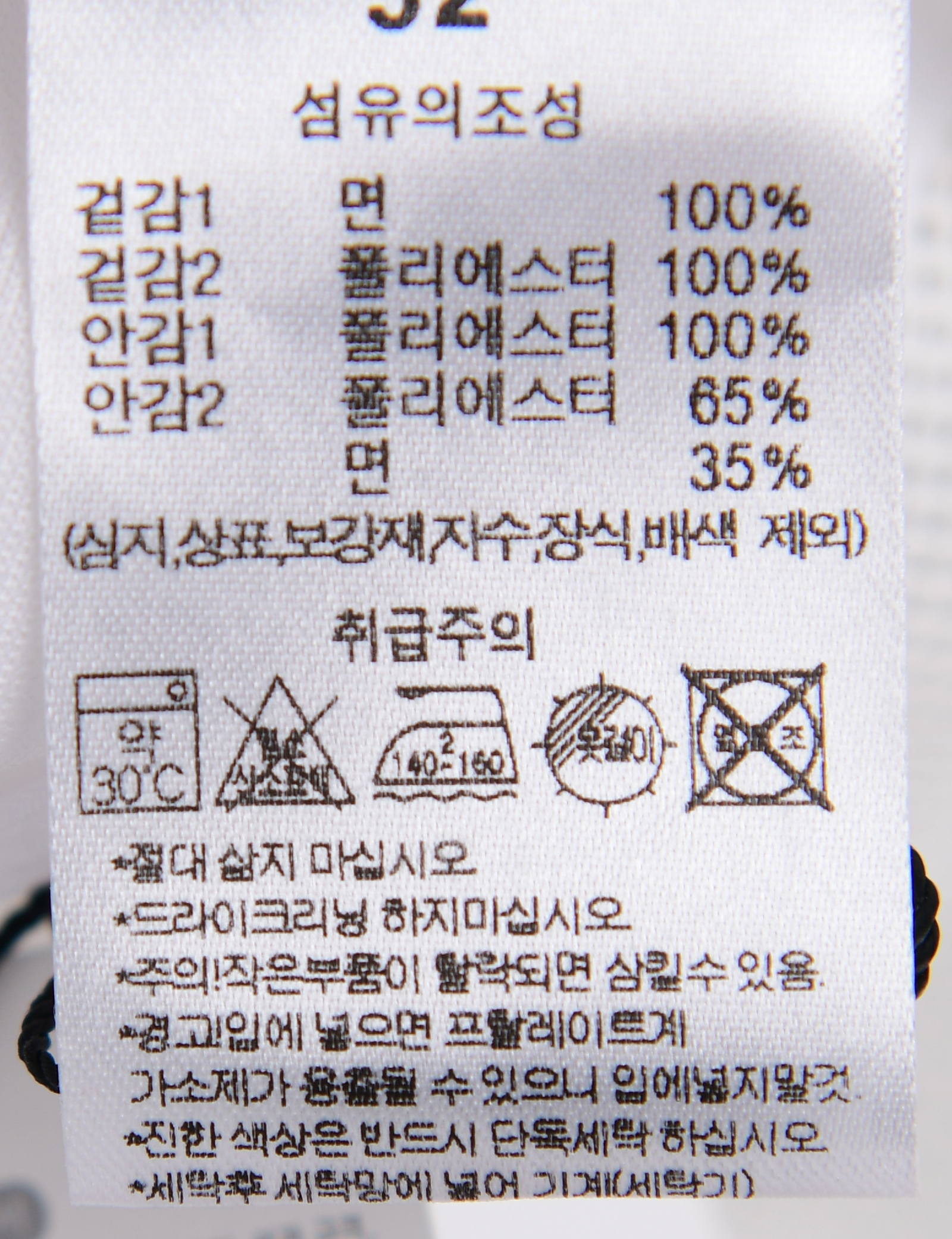 브랜드 홈 바로가기| 제품소재 | (겉감1)면100%(겉감2/안감1)폴리에스터100%(안감2)폴리에스터65%,면35% |