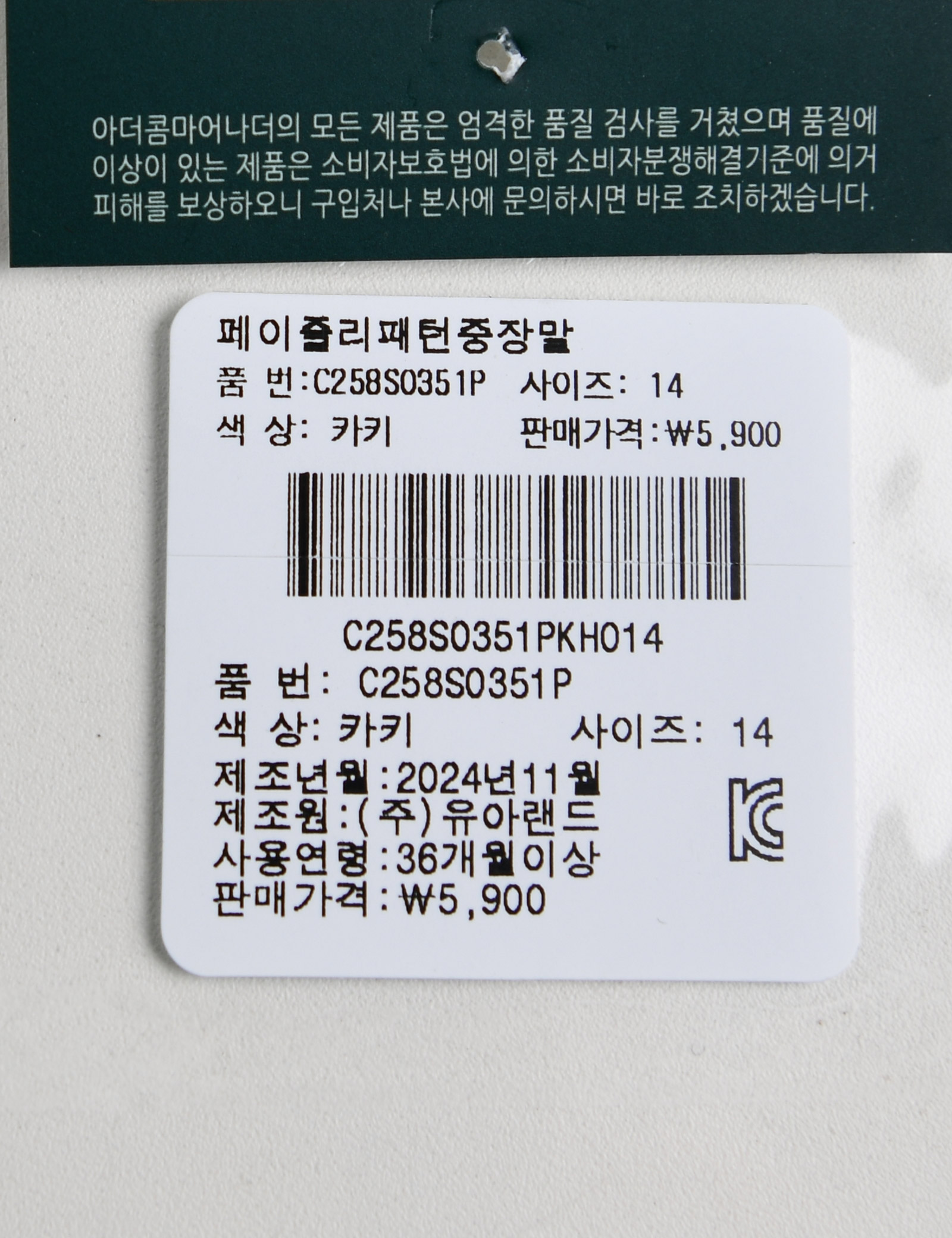 해당 인증정보는 판매자가 등록한 것으로 등록정보에 대한 일체의 책임은 판매자에게 있습니다.