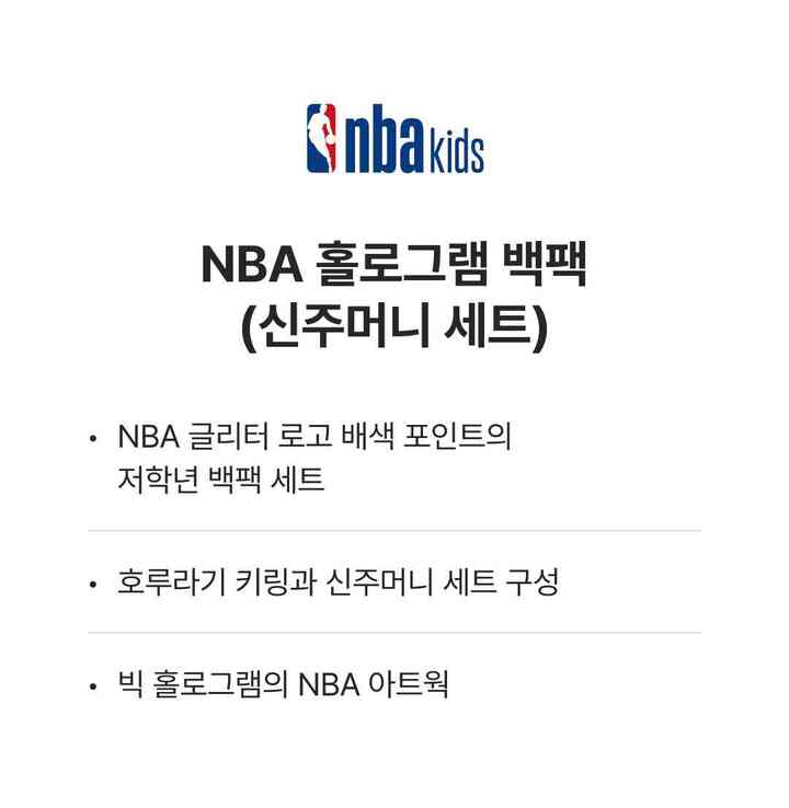 | 상품명 | NBA 홀로그램 백팩 (신주머니 세트)(K261AB010P) |