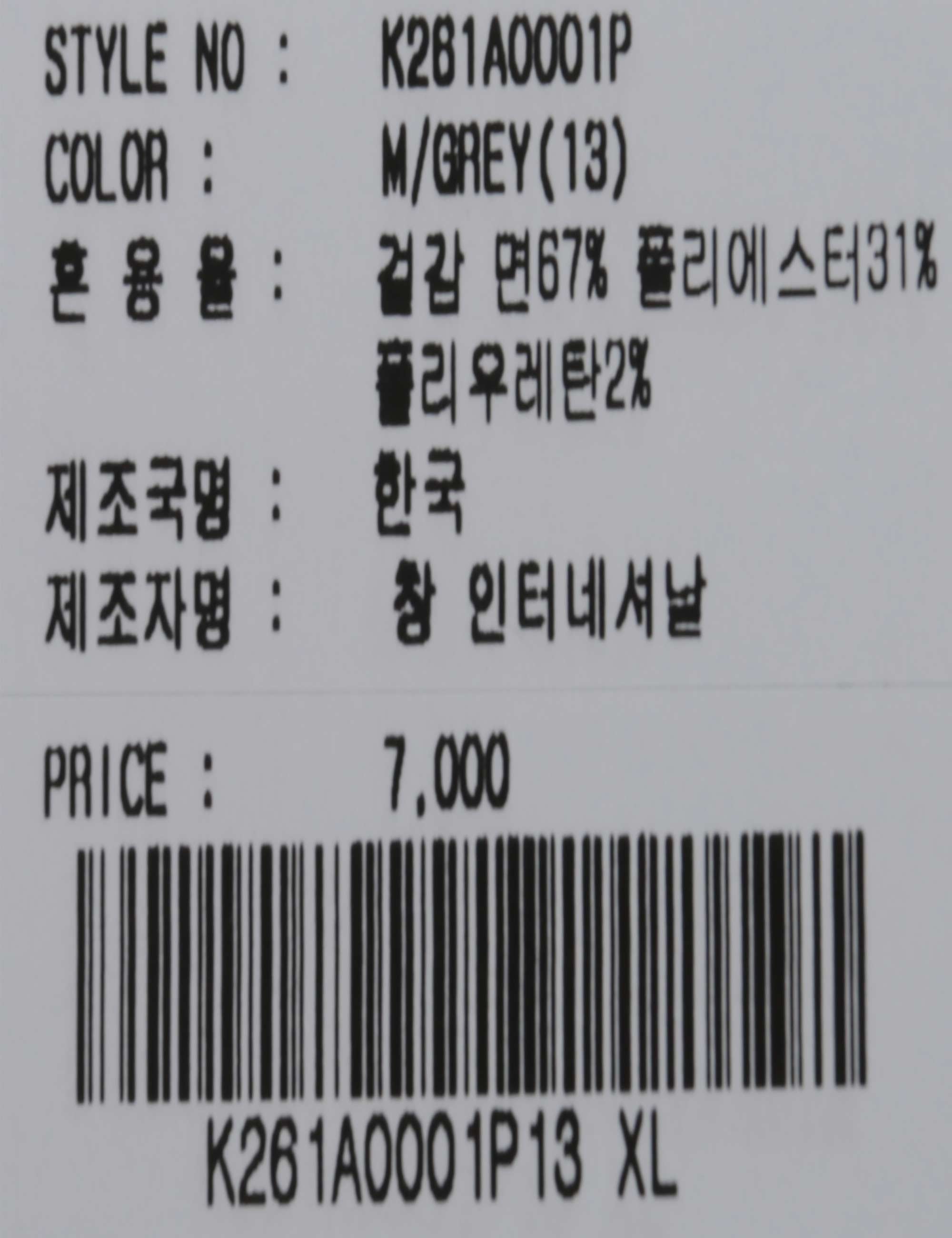 제품소재 [겉감]면67% 폴리에스터31% 폴리우레탄2%
