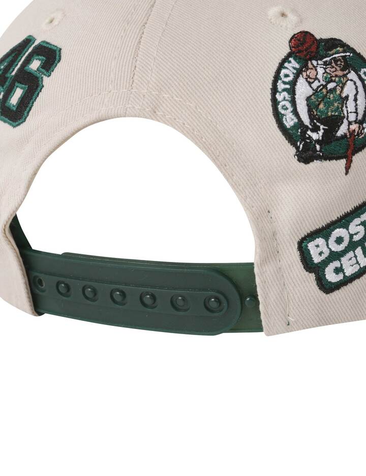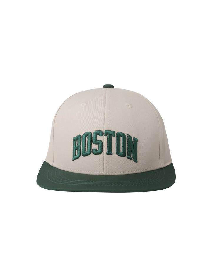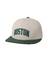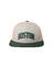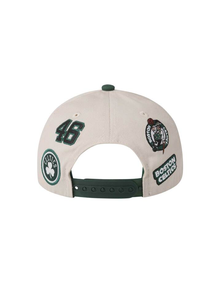 [디자인 포인트] 어센틱 자수 하드 스냅백 스타일로, 전면의 아치형 볼륨자수와 후면의 패치워크 아트워크가 디자인의 핵심 포인트입니다.