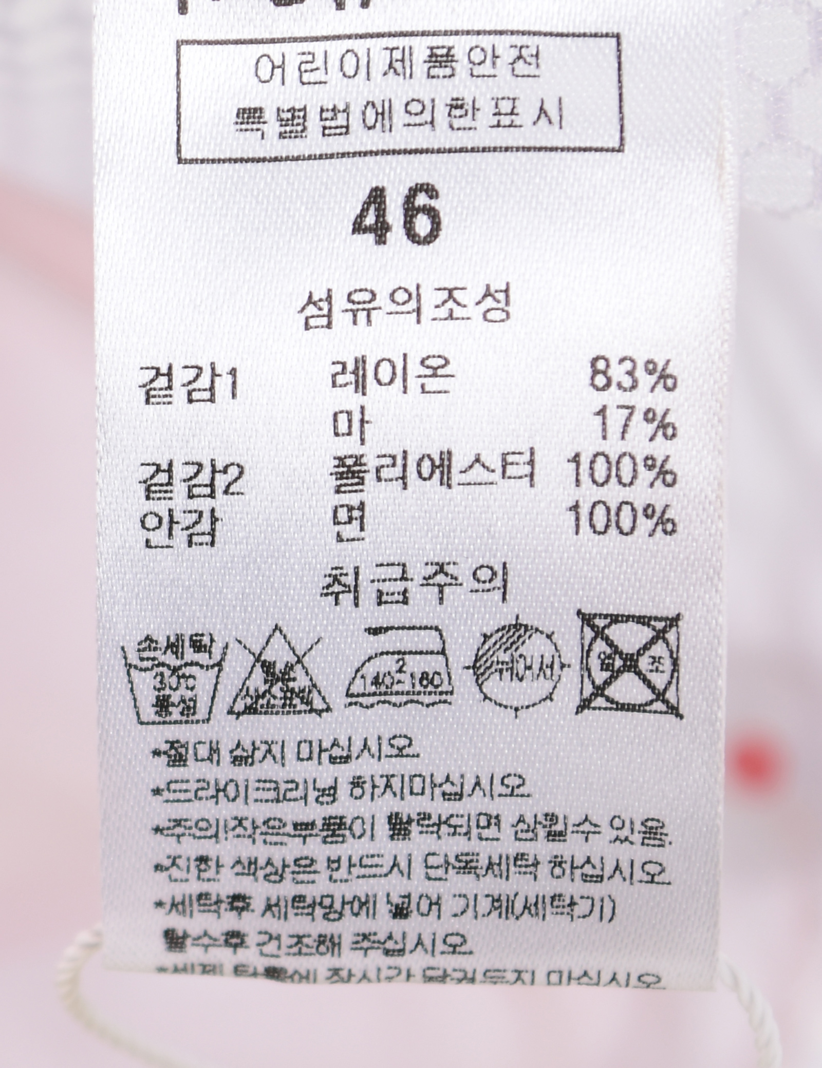 브랜드 홈 바로가기| 제품소재 | (겉감1)레이온83%,마17%(겉감2)폴리에스터100%(안감)면100% |
