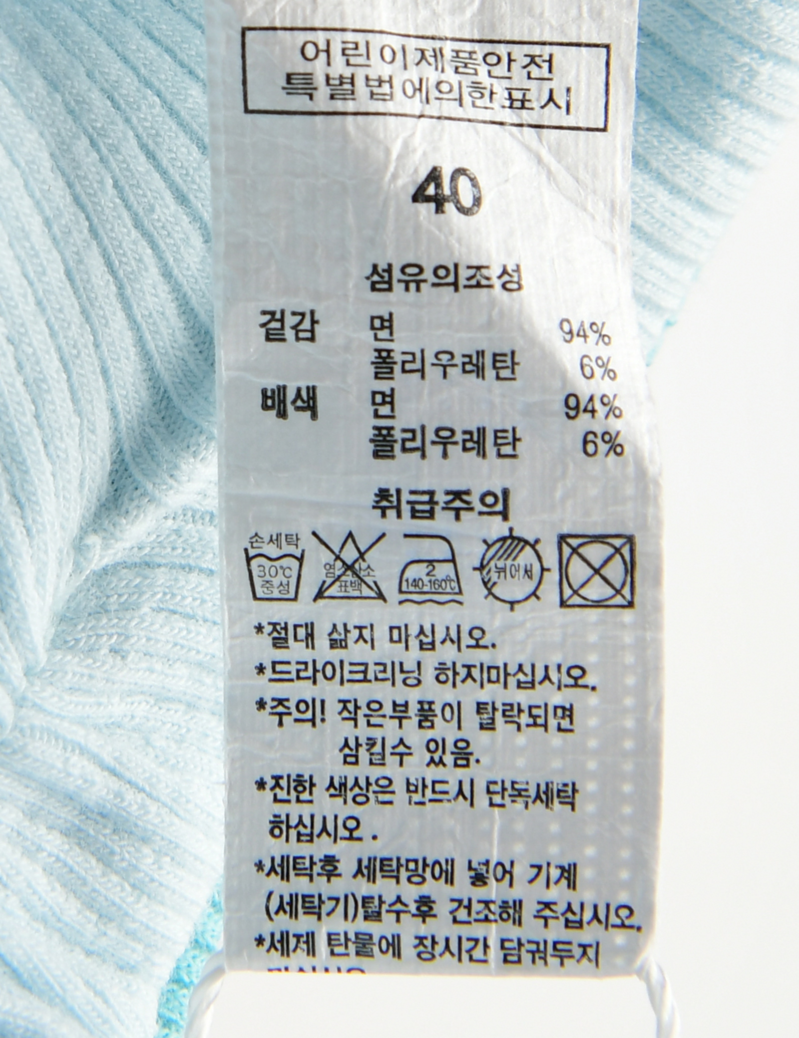 취급시 주의사항 본 세품은 손세탁 하십시오(케어라벨 참고)