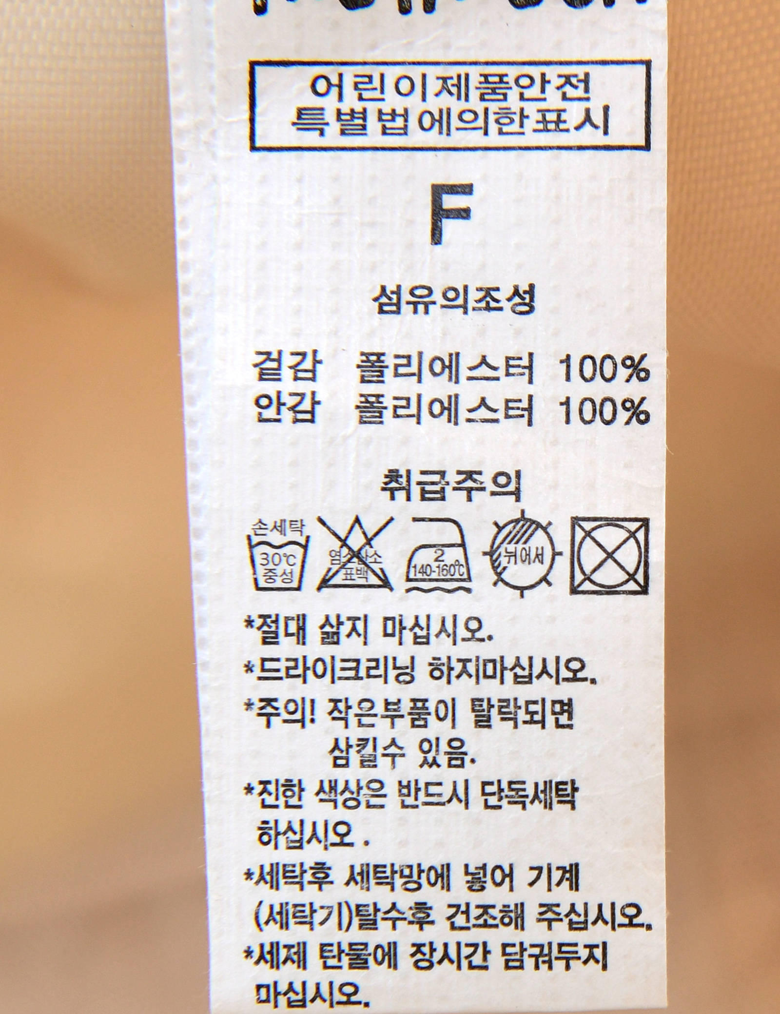 제품소재 (겉감/안감)폴리에스터100%