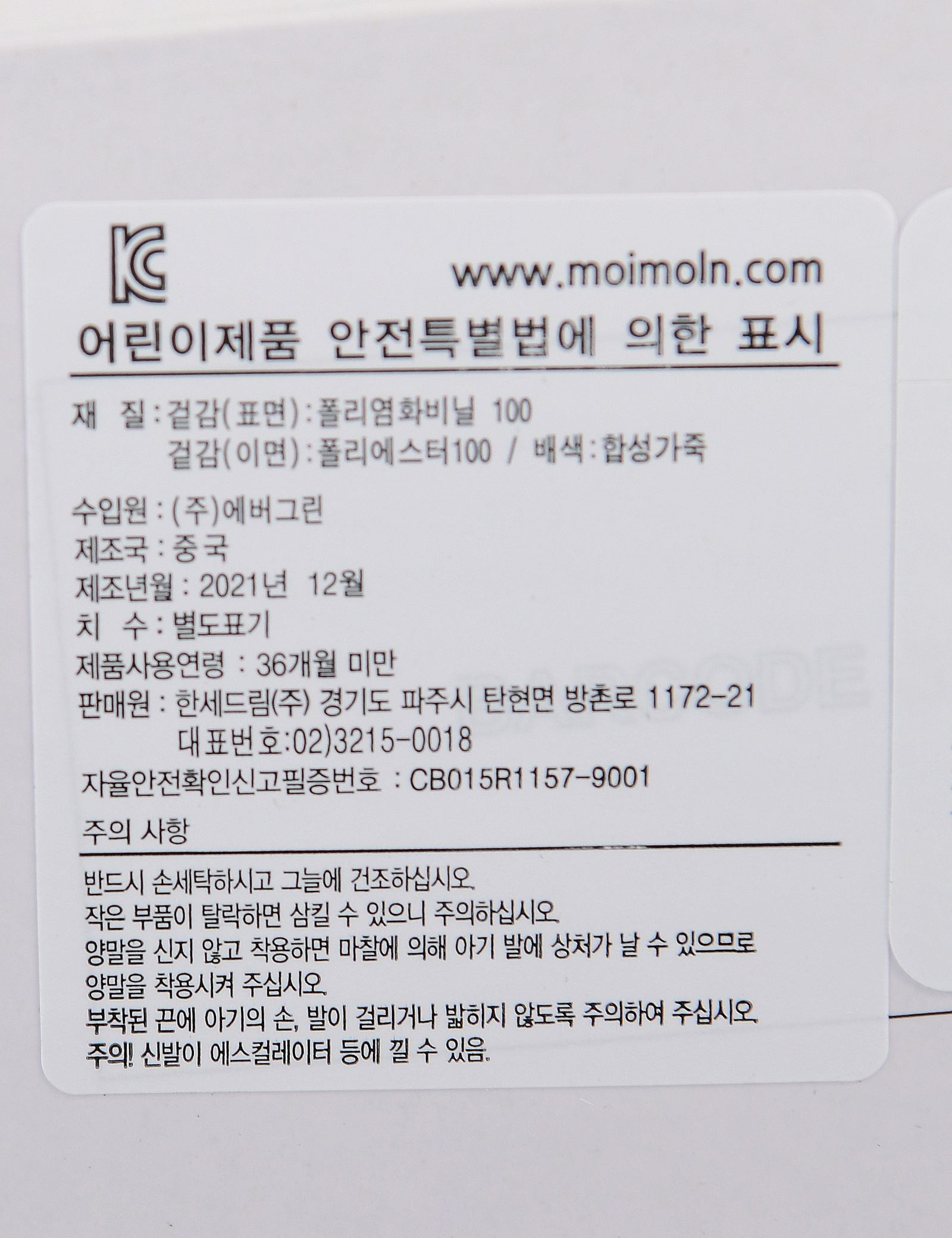 | 안전인증여부 | 관련법 및 소비자분쟁 해결기준에 따름 |