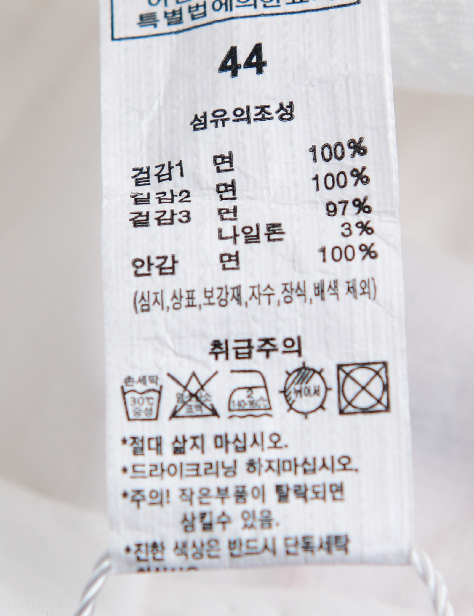 제품소재 (겉감1/겉감2/안감)면100%(겉감3)면97%,나일론3%