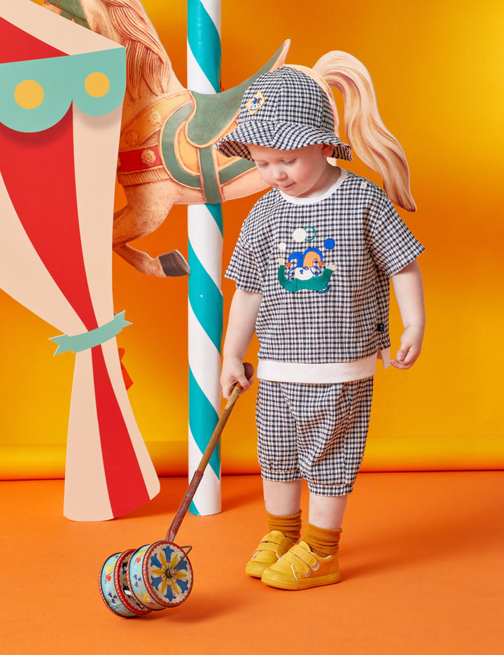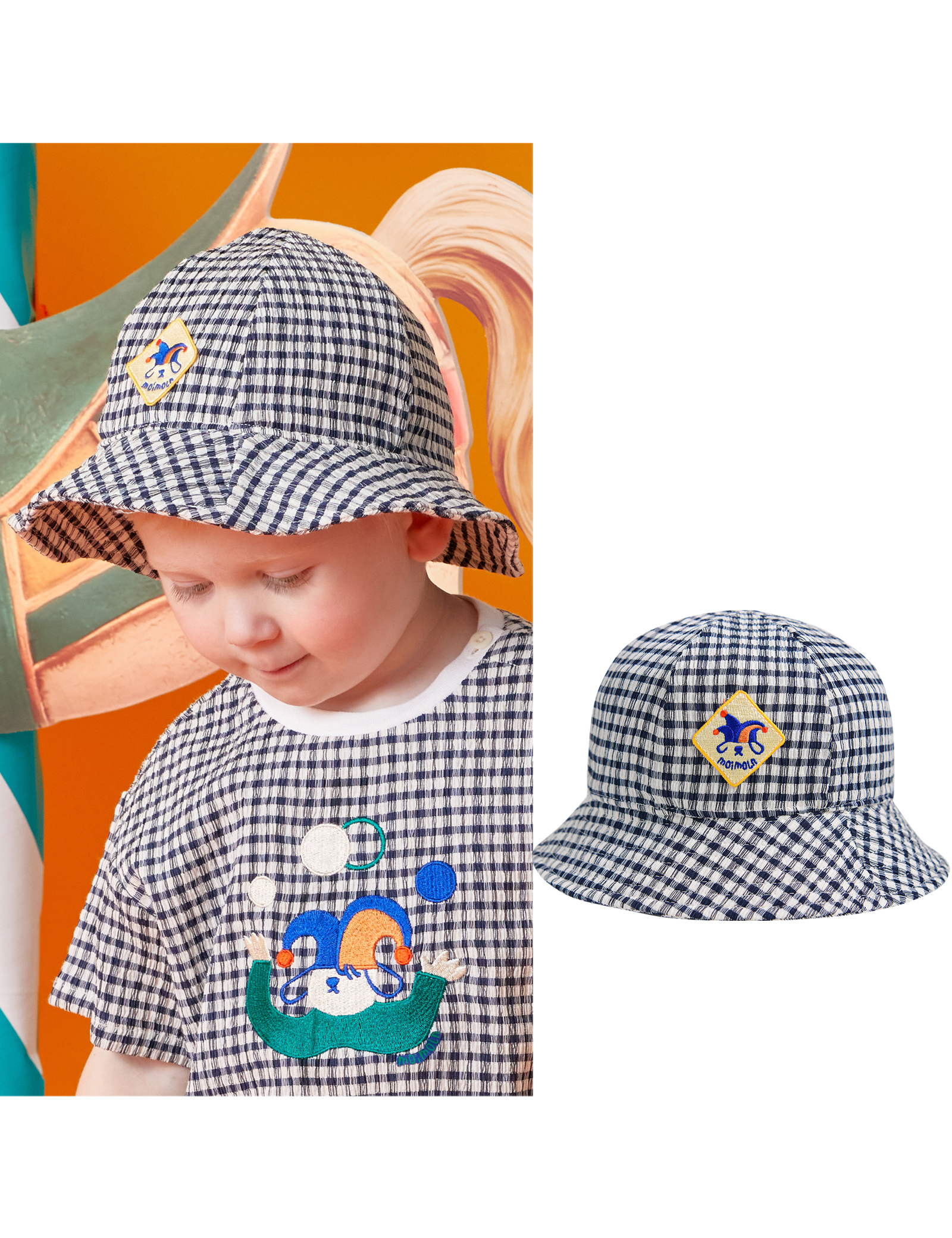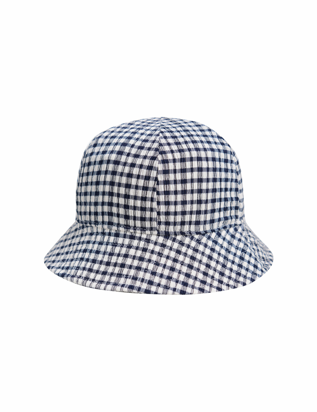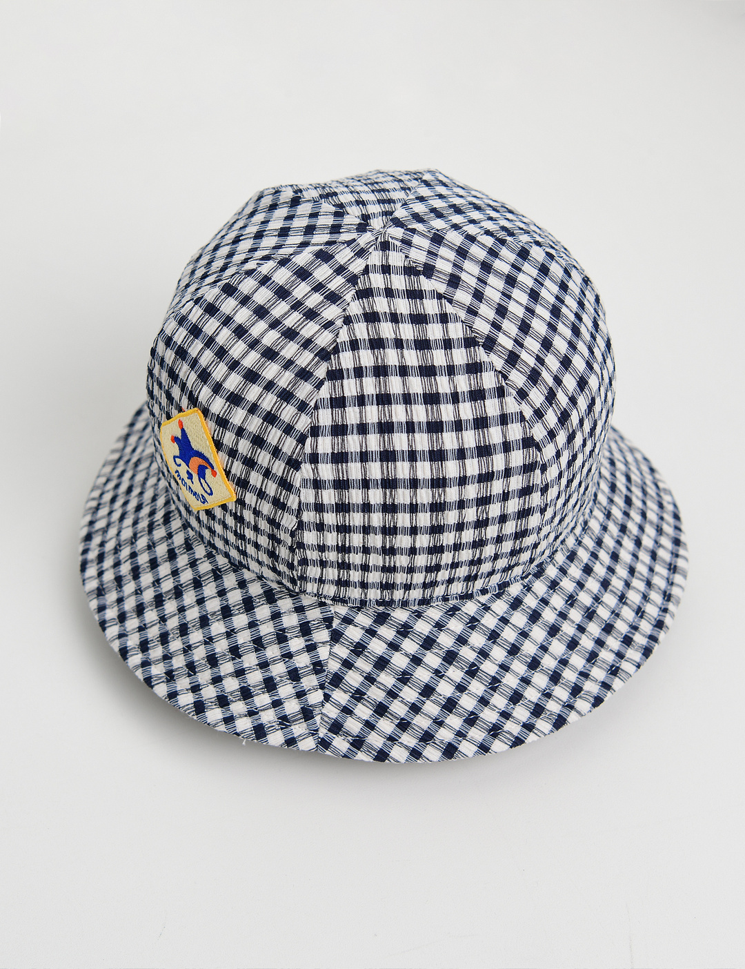 시원한 우븐체크요루 소재로 단정한 디자인의 벙거지모.